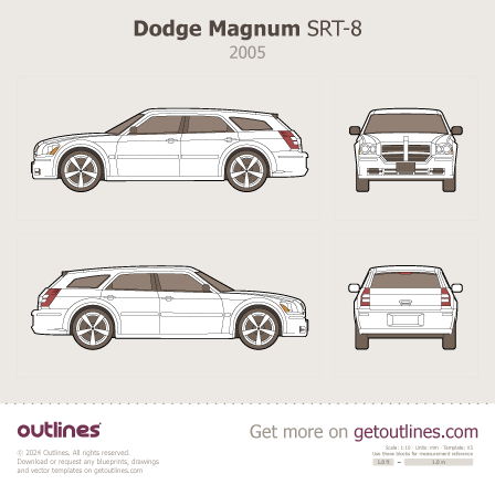 Buy this Dodge Magnum SRT-8 blueprint and line drawing in high-quality editable vector file formats. Best for 3D and car wrap design.