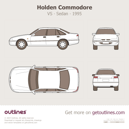 Buy this Holden Commodore VS blueprint and line drawing in high-quality editable vector file formats. Best for 3D and car wrap design.