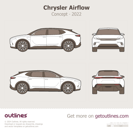 Buy this Chrysler Airflow Concept blueprint and line drawing in high-quality editable vector file formats. Best for 3D and car wrap design.