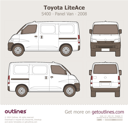 This is a blueprint of the LiteAce, produced by carmaker Toyota in 2008 - 2026. It features a Van body design and is classified as a Commercial vehicle.