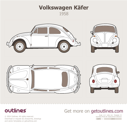 This 1958 Volkswagen Kafer Top View Sedan blueprint helps designers, wrap studios, and 3D artists simplify their workflow and save valuable time for creative work instead of routine tasks.