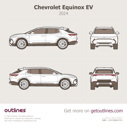 Buy this Chevrolet Equinox EV blueprint and line drawing in high-quality editable vector file formats. Best for 3D and car wrap design.