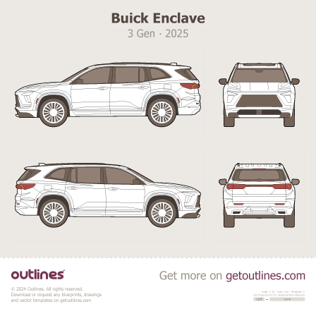 Buy this Buick Enclave 3 Gen blueprint and line drawing in high-quality editable vector file formats. Best for 3D and car wrap design.