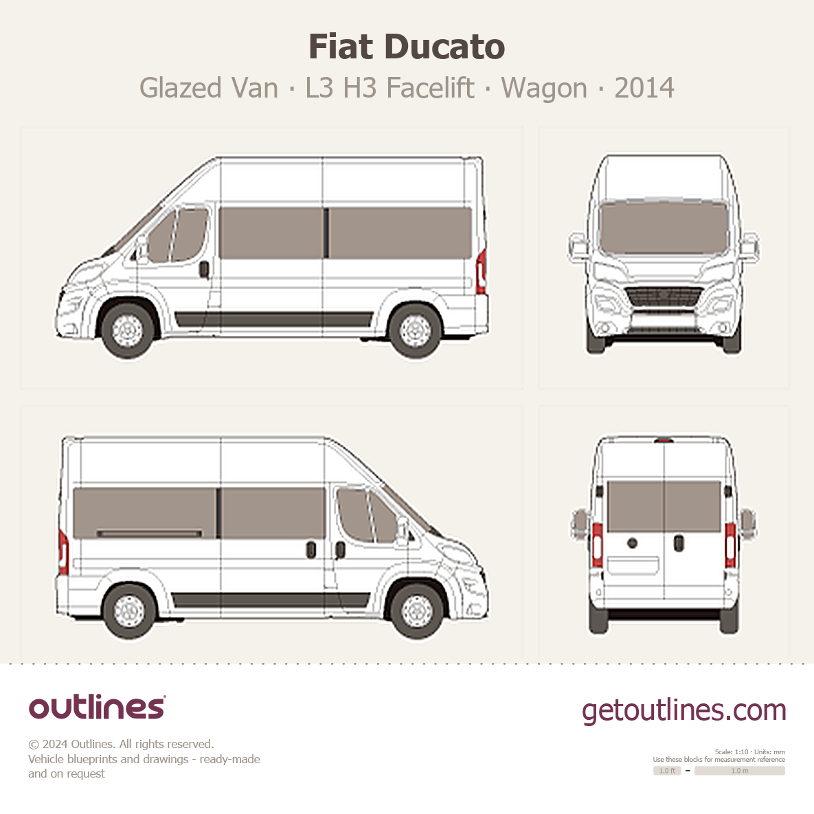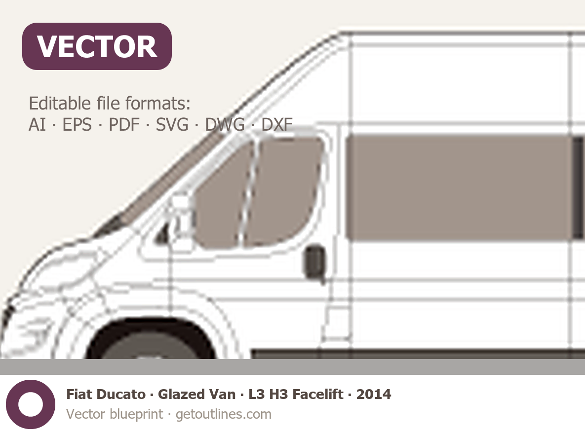 This 2014 Fiat Ducato Glazed Van L3 H3 Facelift Wagon blueprint helps designers, wrap studios, and 3D artists simplify their workflow and save valuable time for creative work instead of routine tasks.
