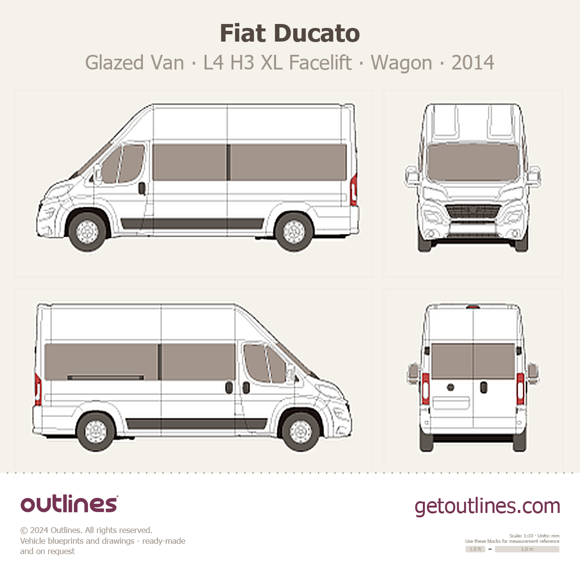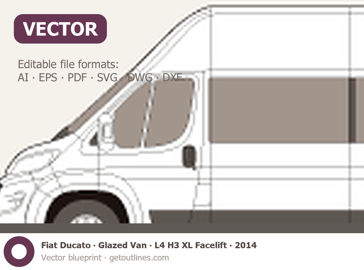 This 2014 Fiat Ducato Glazed Van L4 H3 XL Facelift Wagon blueprint helps designers, wrap studios, and 3D artists simplify their workflow and save valuable time for creative work instead of routine tasks.