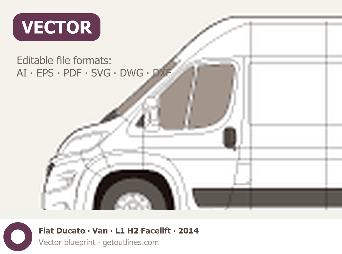 This 2014 Fiat Ducato Van L1 H2 Facelift Wagon blueprint helps designers, wrap studios, and 3D artists simplify their workflow and save valuable time for creative work instead of routine tasks.