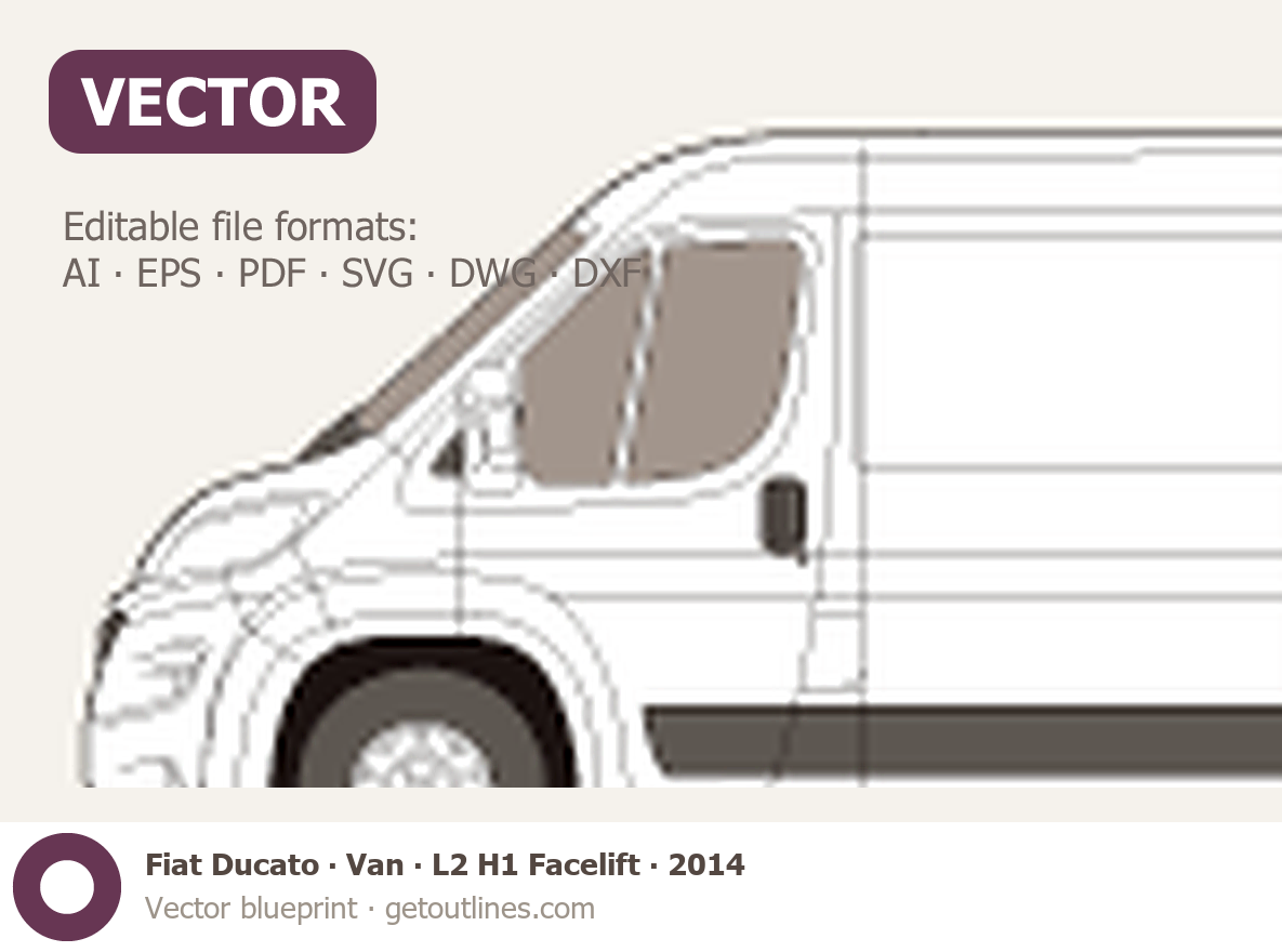 Buy this Fiat Ducato Van blueprint and line drawing in high-quality editable vector file formats. Best for 3D and car wrap design.
