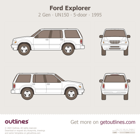 This is a blueprint of the Explorer, produced by carmaker Ford in 1995 - 2002. It features a SUV body design and is classified as a Offroad vehicle.