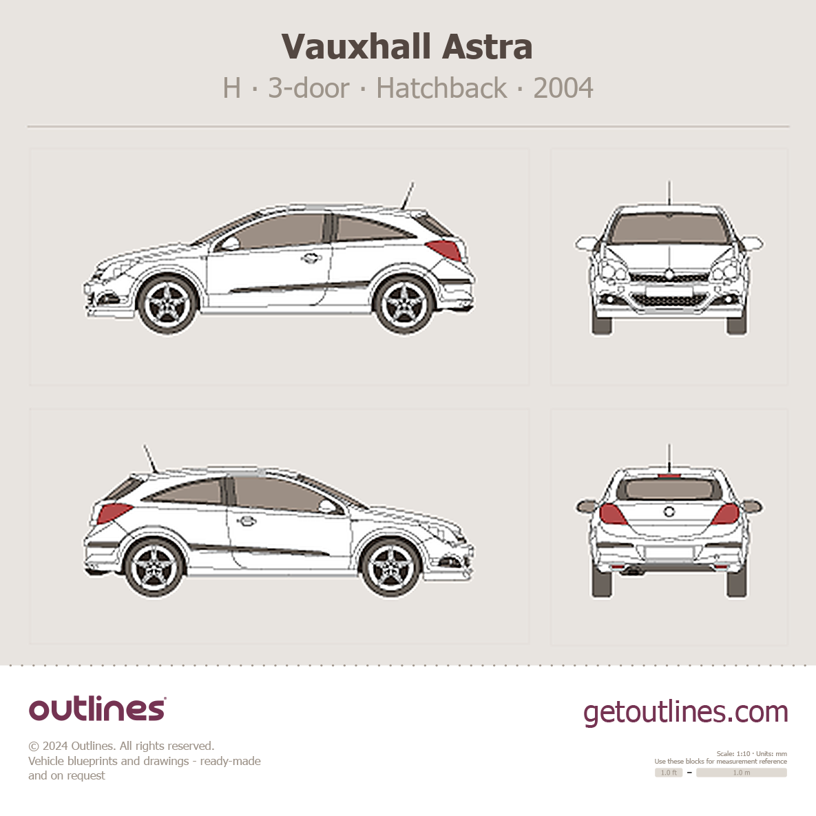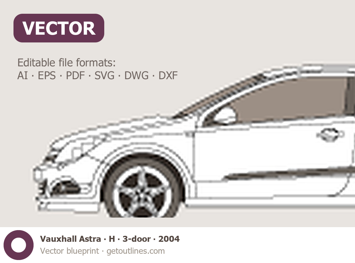 This 2004 Vauxhall Astra H 3-door Hatchback blueprint helps designers, wrap studios, and 3D artists simplify their workflow and save valuable time for creative work instead of routine tasks.