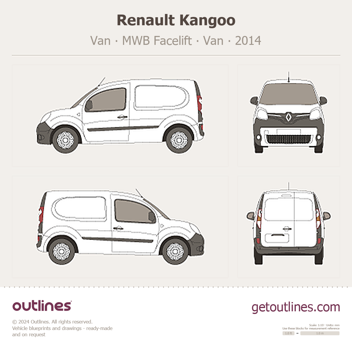 This is a blueprint of the Kangoo, produced by carmaker Renault in 2014 - Present (2025, 2026). It features a Van body design and is classified as a Commercial vehicle.