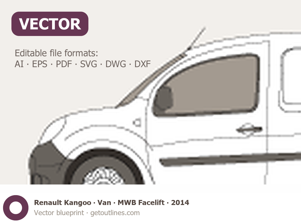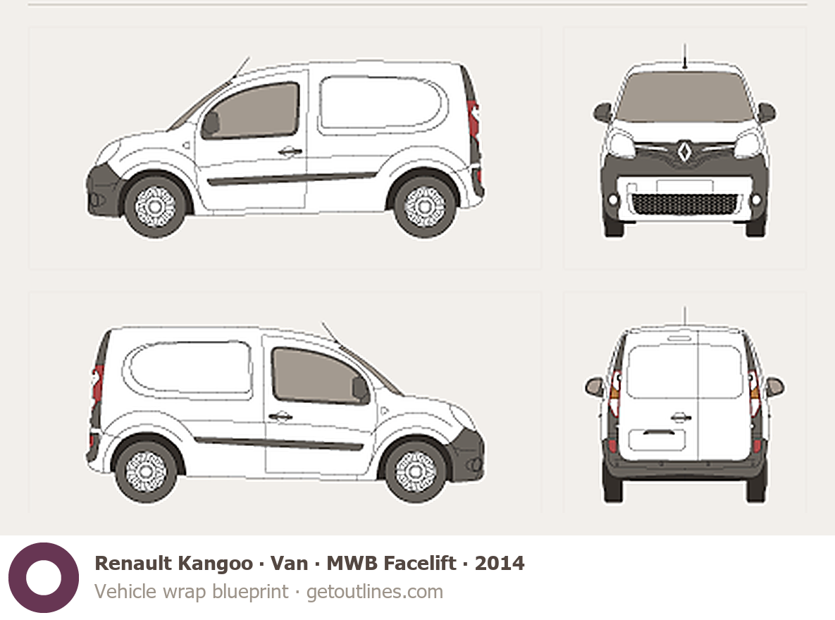 This 2014 Renault Kangoo Van MWB Facelift Van blueprint helps designers, wrap studios, and 3D artists simplify their workflow and save valuable time for creative work instead of routine tasks.