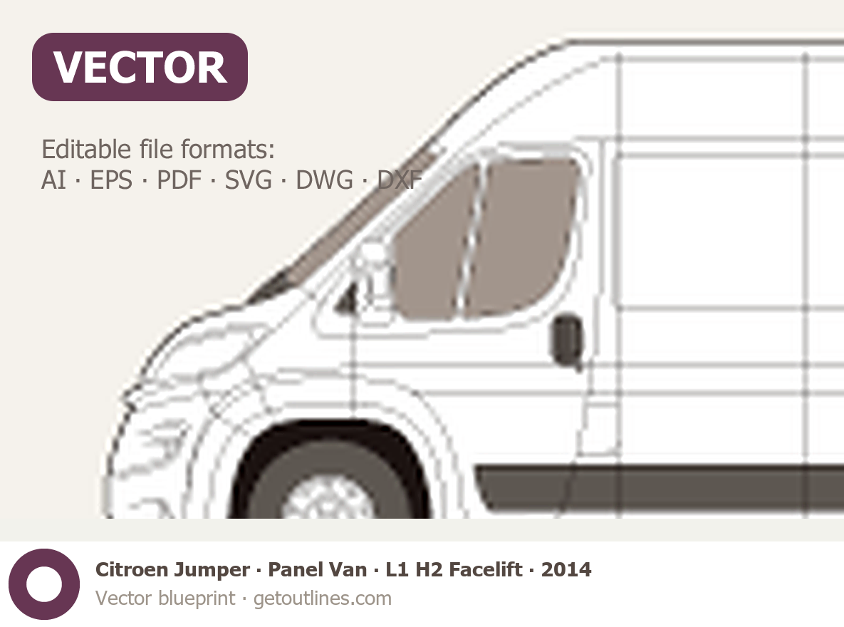This 2014 Citroen Jumper Panel Van L1 H2 Facelift Van blueprint helps designers, wrap studios, and 3D artists simplify their workflow and save valuable time for creative work instead of routine tasks.