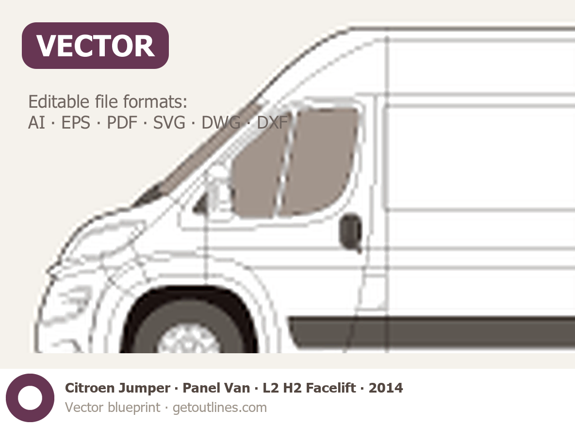Buy this Citroen Jumper Panel Van blueprint and line drawing in high-quality editable vector file formats. Best for 3D and car wrap design.