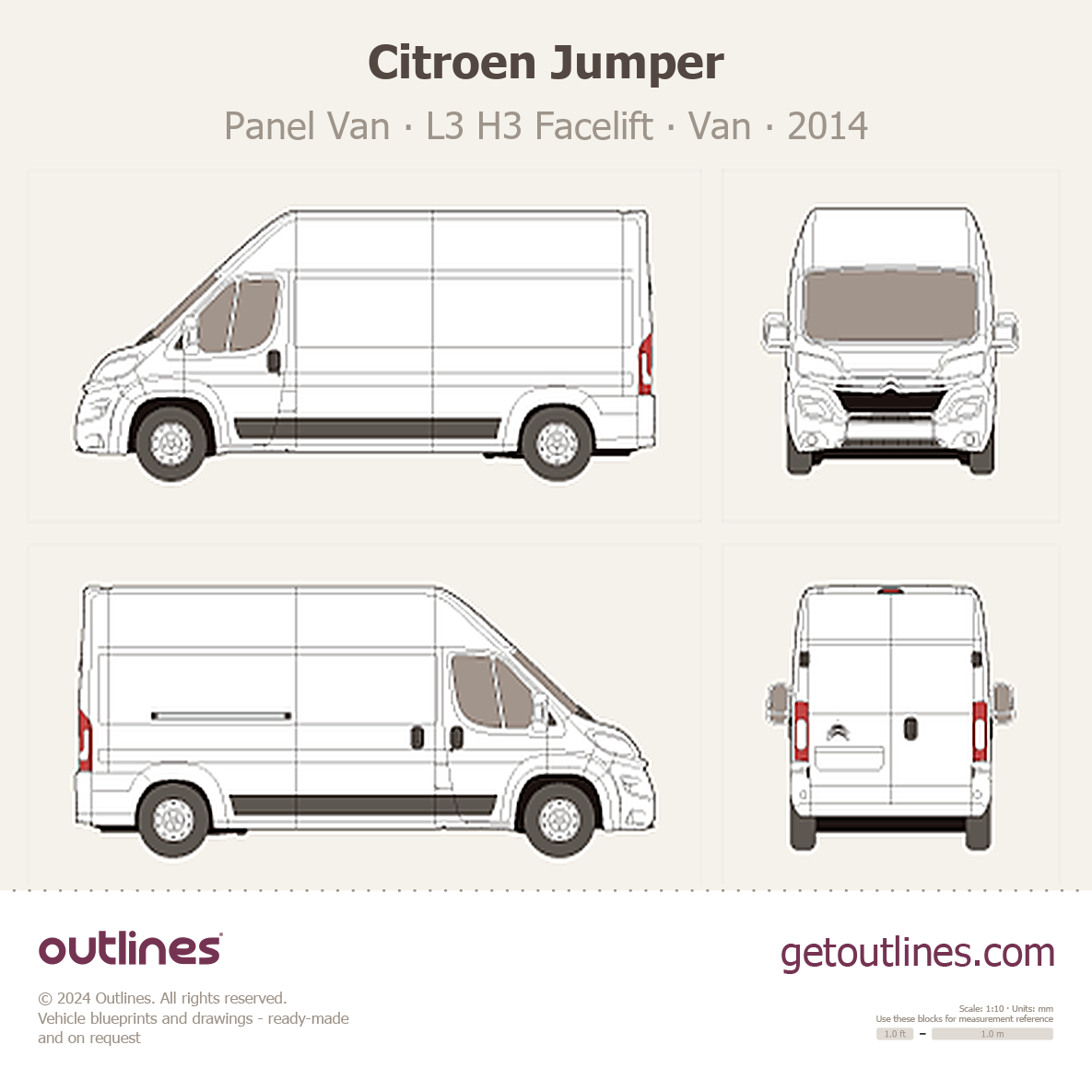 This is a blueprint of the Jumper, produced by carmaker Citroen in 2014 - Present (2025, 2026). It features a Van body design and is classified as a Commercial vehicle.