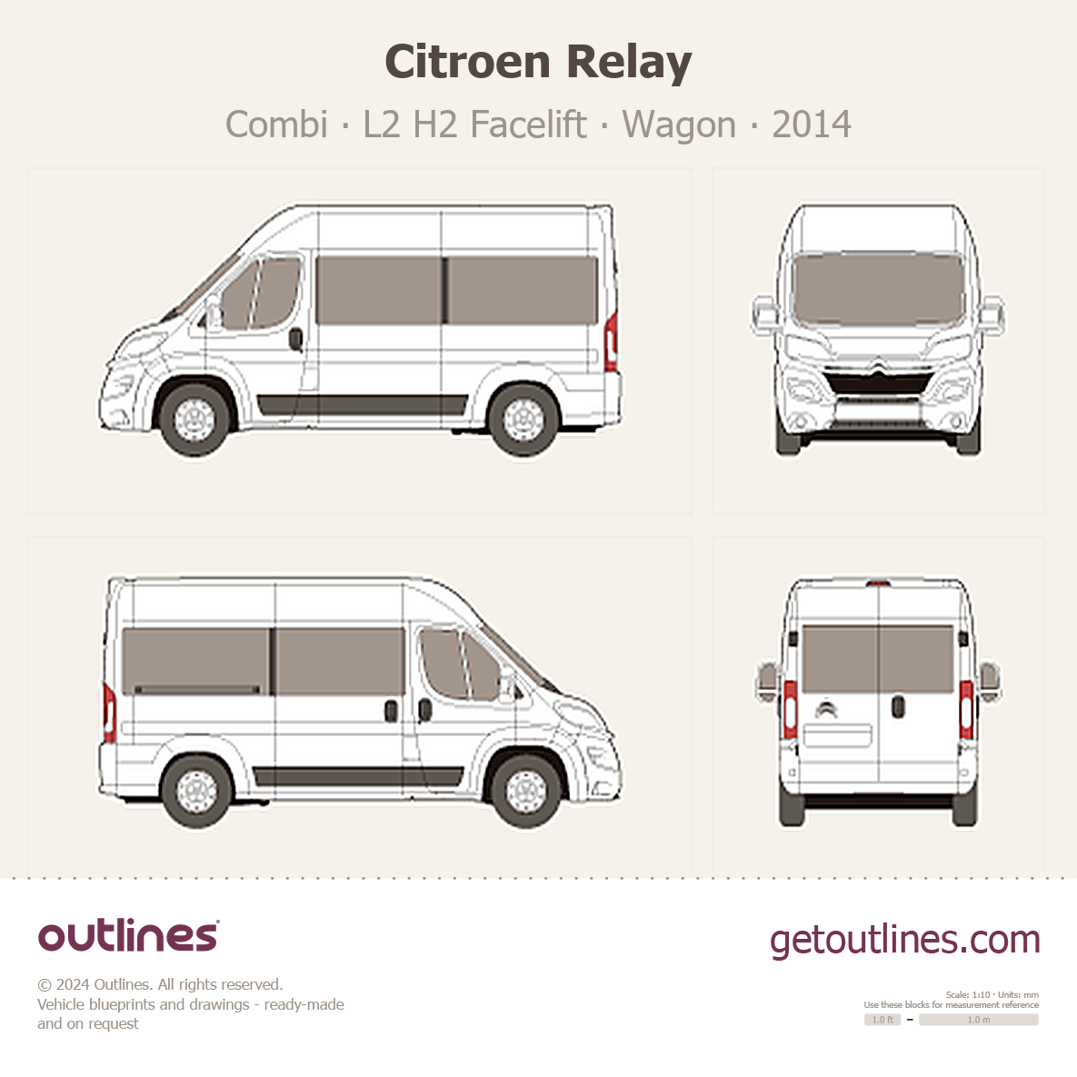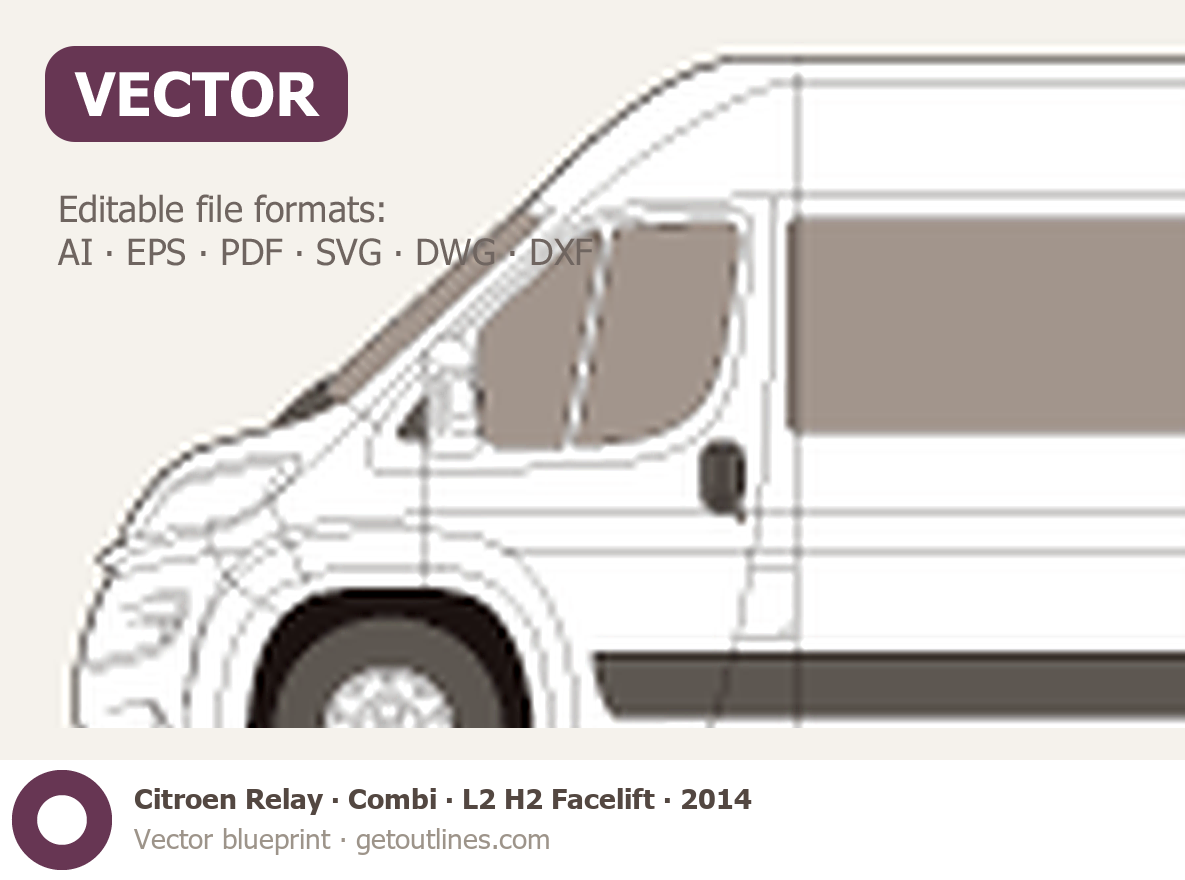 This 2014 Citroen Relay Combi L2 H2 Facelift Wagon blueprint helps designers, wrap studios, and 3D artists simplify their workflow and save valuable time for creative work instead of routine tasks.