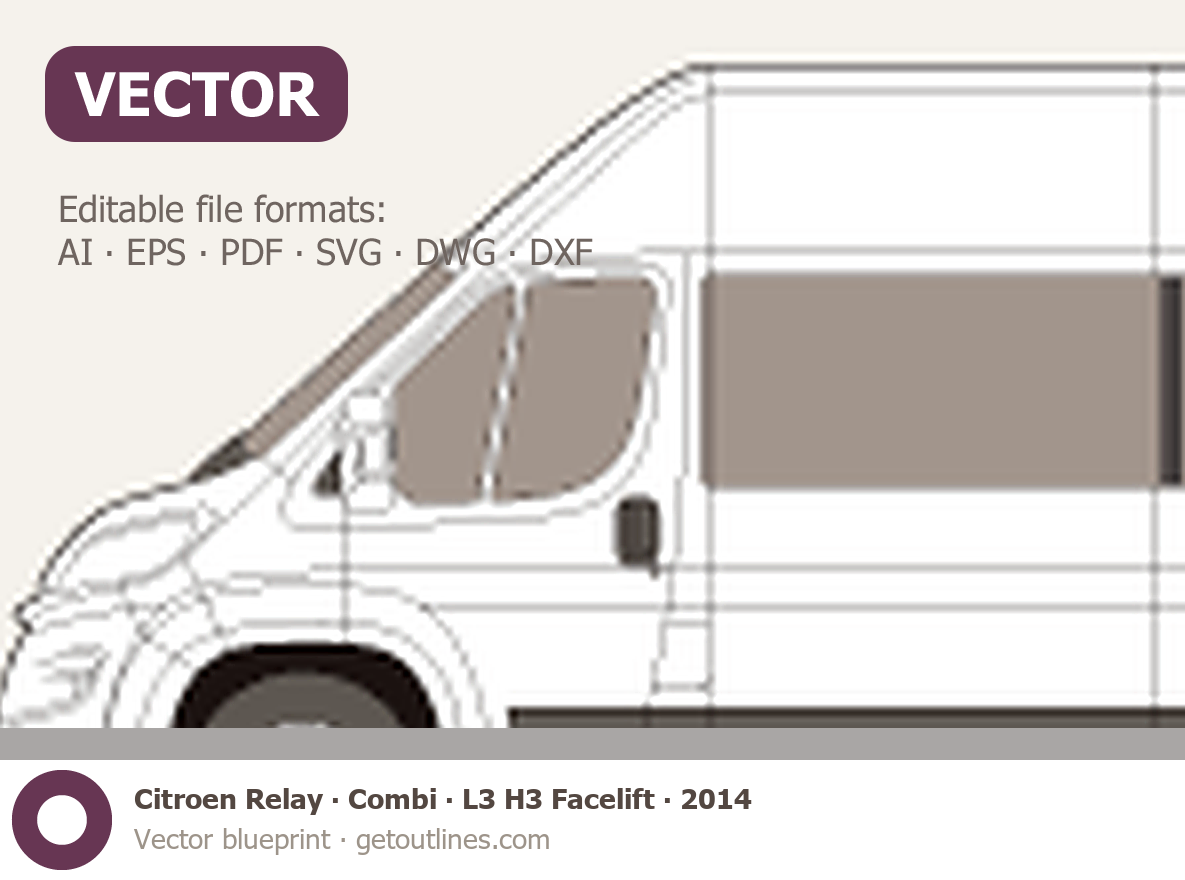 This 2014 Citroen Relay Combi L3 H3 Facelift Wagon blueprint helps designers, wrap studios, and 3D artists simplify their workflow and save valuable time for creative work instead of routine tasks.