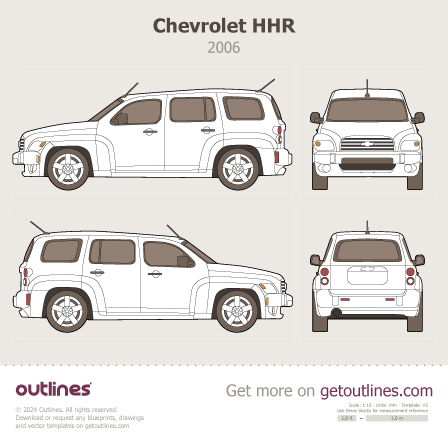 This is a blueprint of the HHR, produced by carmaker Chevrolet in 2006 - 2011. It features a Wagon body design and is classified as a Family vehicle.