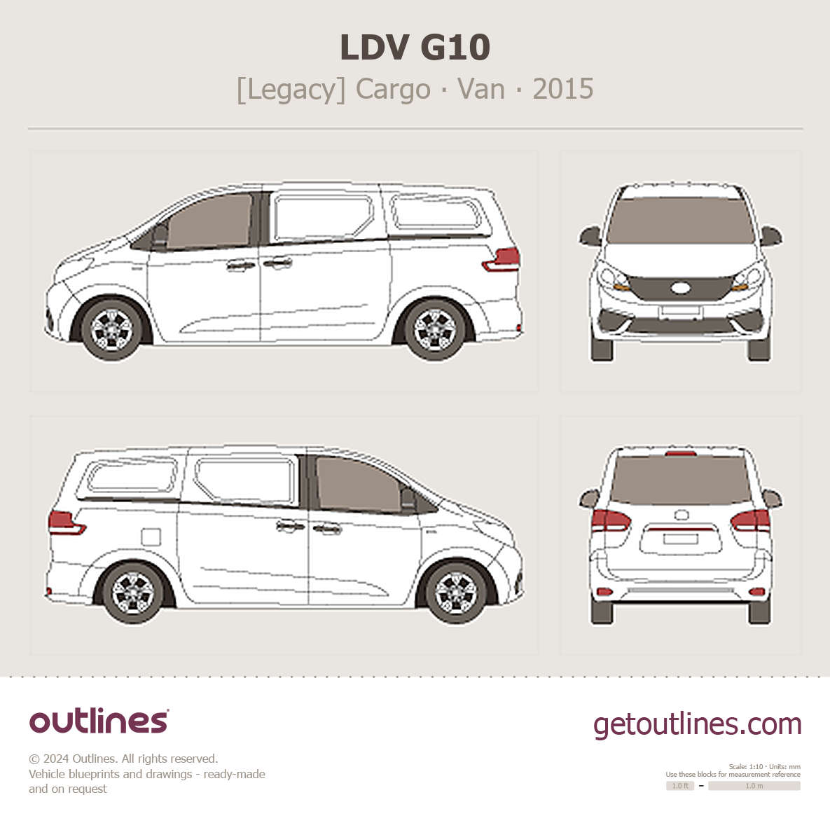 This is a blueprint of the G10, produced by carmaker LDV in 2015 - Present (2025, 2026). It features a Van body design and is classified as a Commercial vehicle.