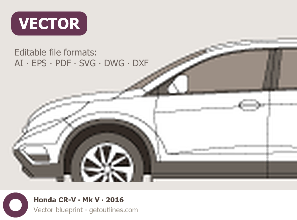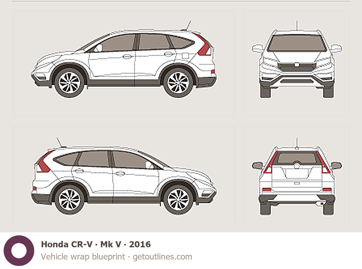 This 2016 Honda CR-V Mk V SUV blueprint helps designers, wrap studios, and 3D artists simplify their workflow and save valuable time for creative work instead of routine tasks.