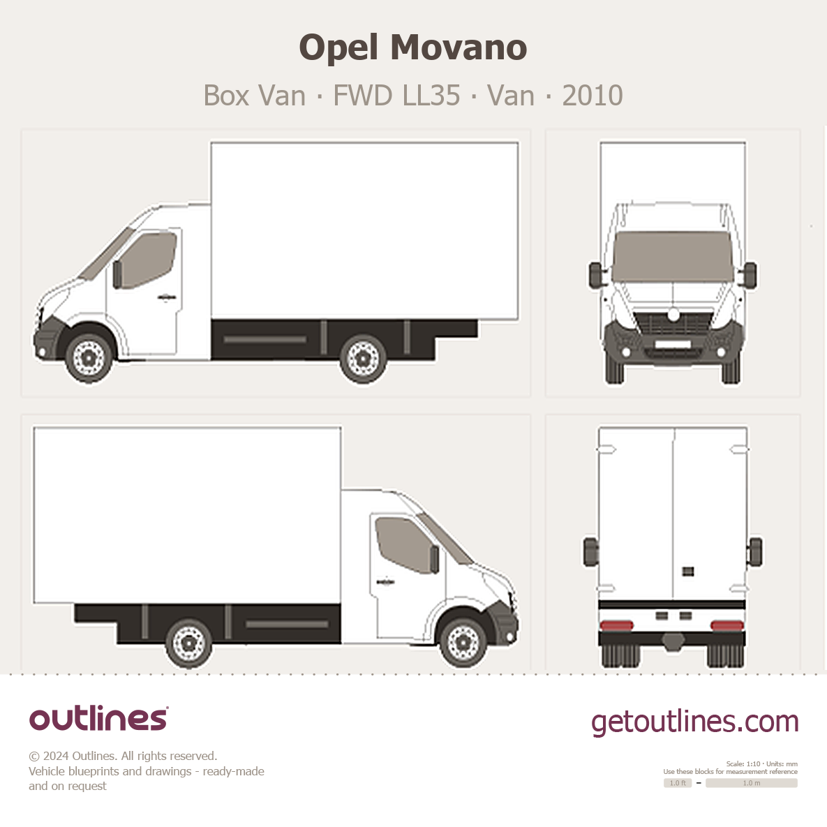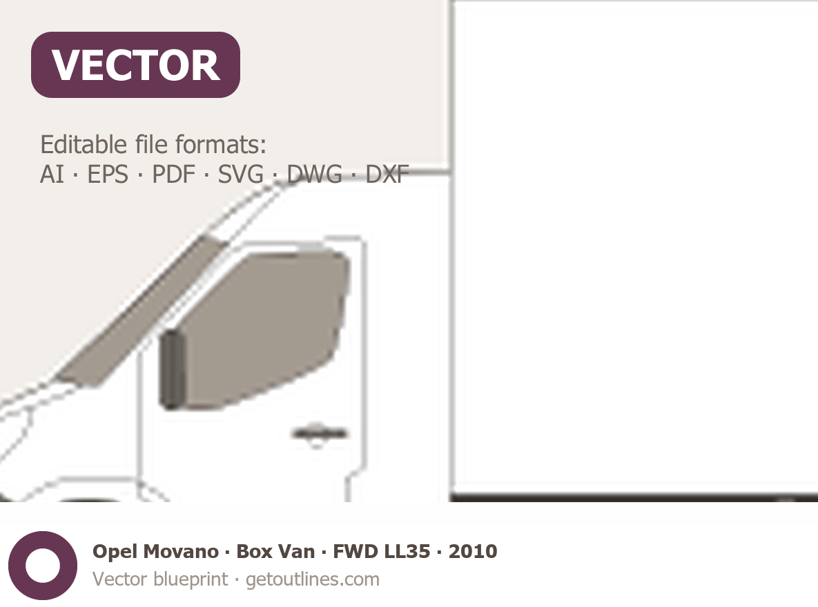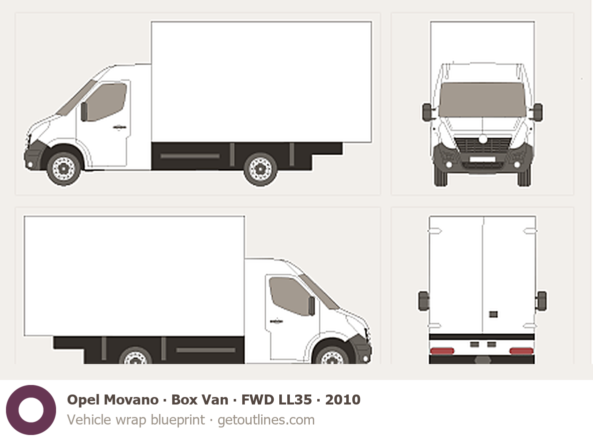 This 2010 Opel Movano Box Van FWD LL35 Van blueprint helps designers, wrap studios, and 3D artists simplify their workflow and save valuable time for creative work instead of routine tasks.