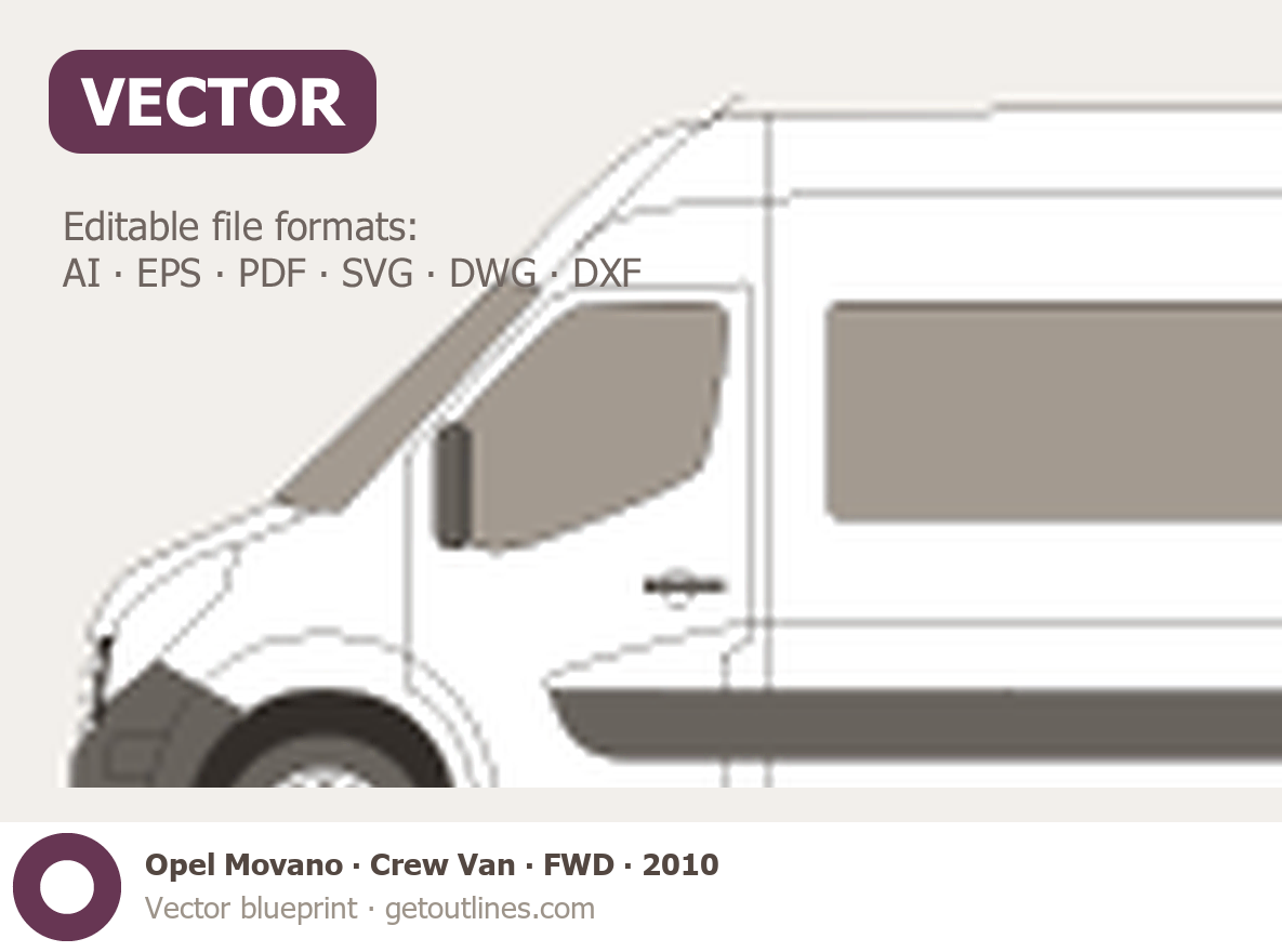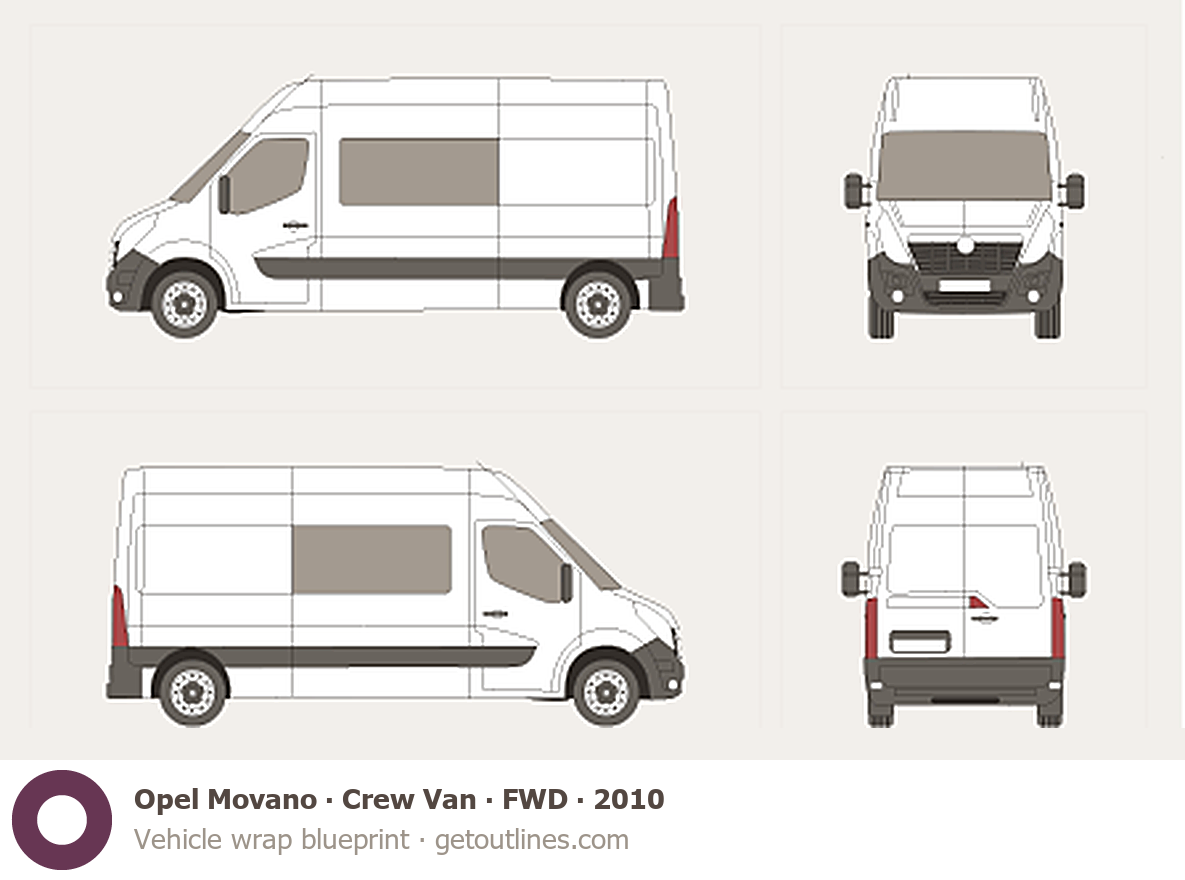 This 2010 Opel Movano Crew Van FWD Van blueprint helps designers, wrap studios, and 3D artists simplify their workflow and save valuable time for creative work instead of routine tasks.