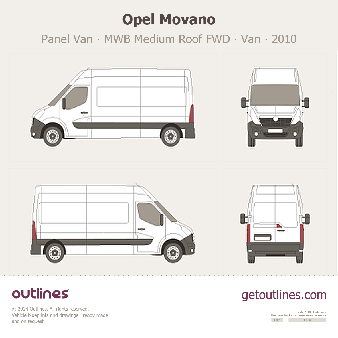 This is a blueprint of the Movano, produced by carmaker Opel in 2010 - Present (2025, 2026). It features a Van body design and is classified as a Commercial vehicle.