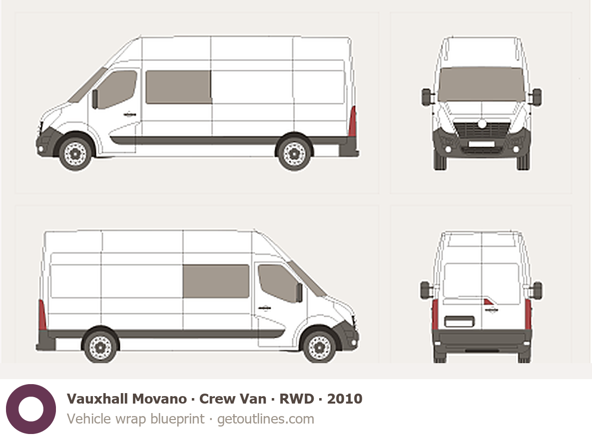This 2010 Vauxhall Movano Crew Van RWD Van blueprint helps designers, wrap studios, and 3D artists simplify their workflow and save valuable time for creative work instead of routine tasks.