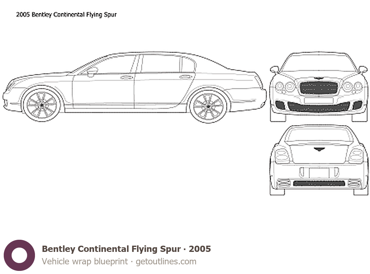 This template is suitable for Bentley Continental Flying Spur models from 2005 to 2013, including 2005, 2006, 2007, 2008, and 2013 model years, and is commonly used for vehicle wrap and signage design.