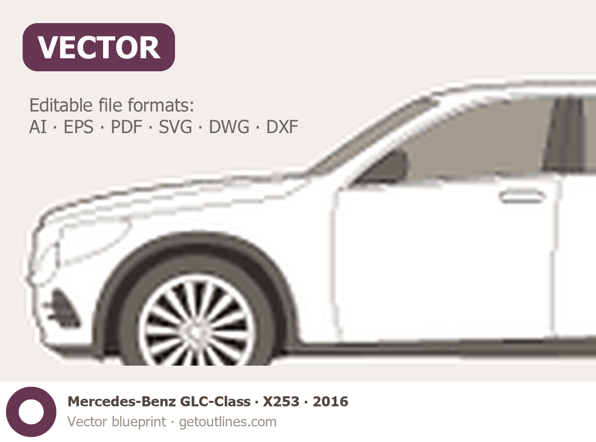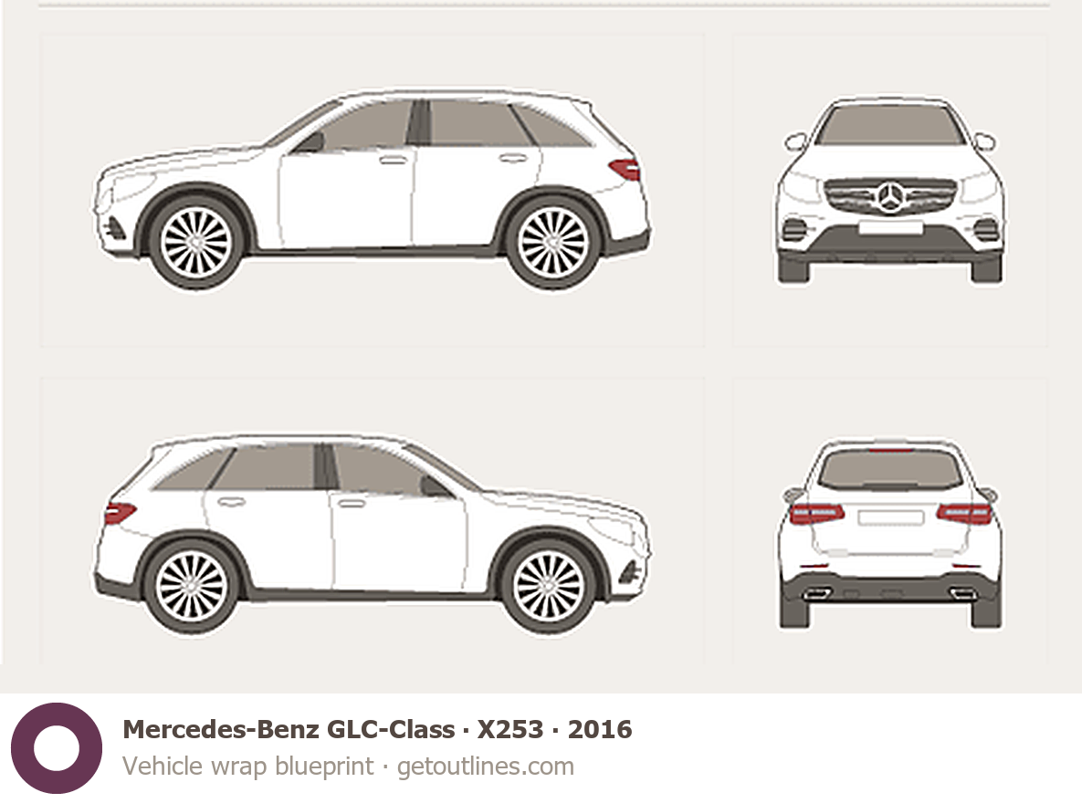 This template is suitable for Mercedes-Benz GLC-Class models from 2016, including 2016, 2017, 2018, 2019, and 2026 model years, and is commonly used for vehicle wrap and signage design.
