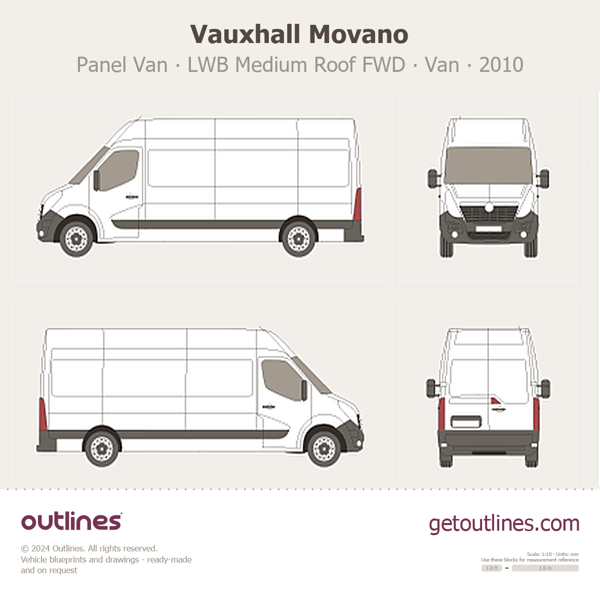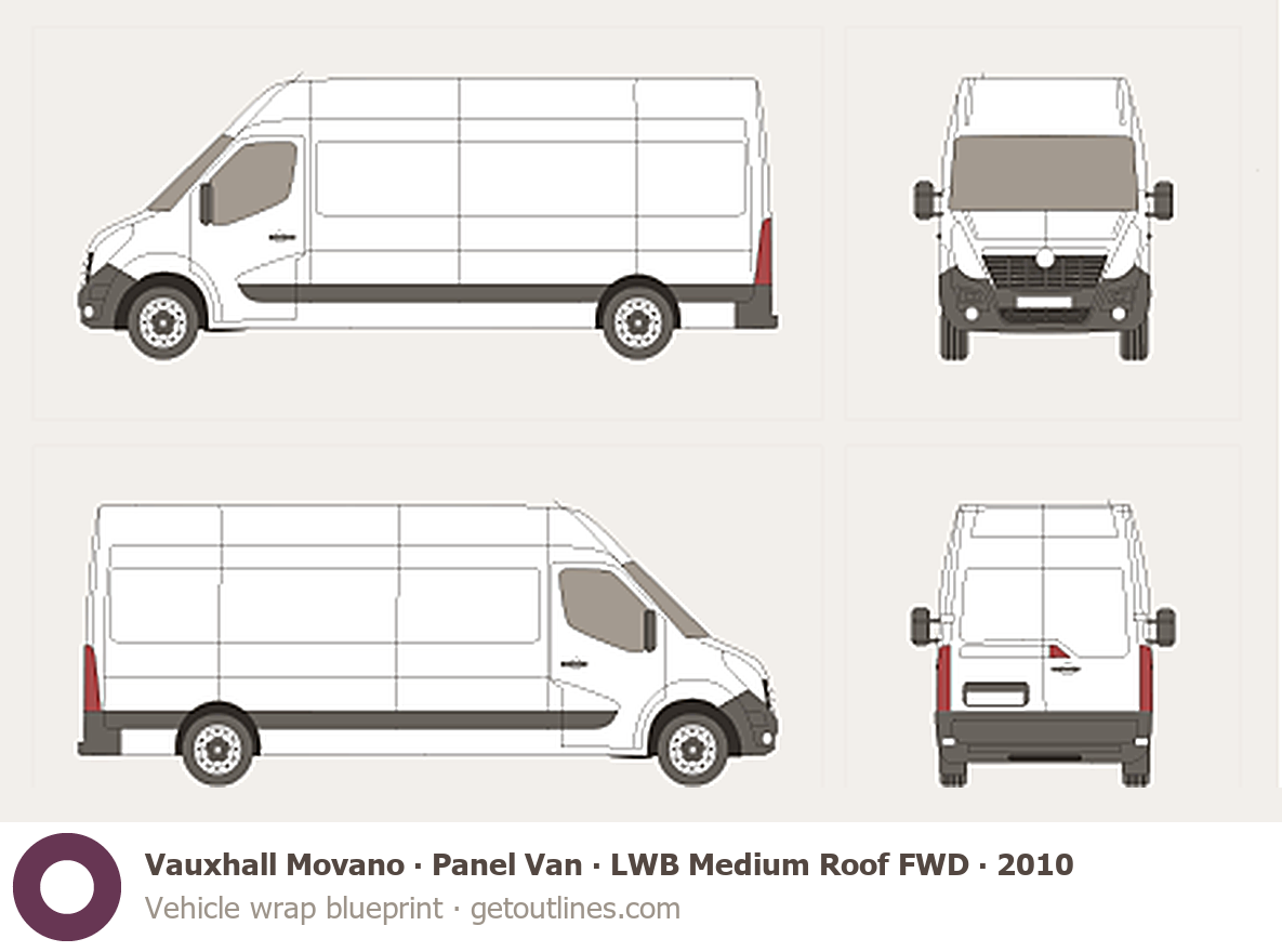 This 2010 Vauxhall Movano Panel Van LWB Medium Roof FWD Van blueprint helps designers, wrap studios, and 3D artists simplify their workflow and save valuable time for creative work instead of routine tasks.