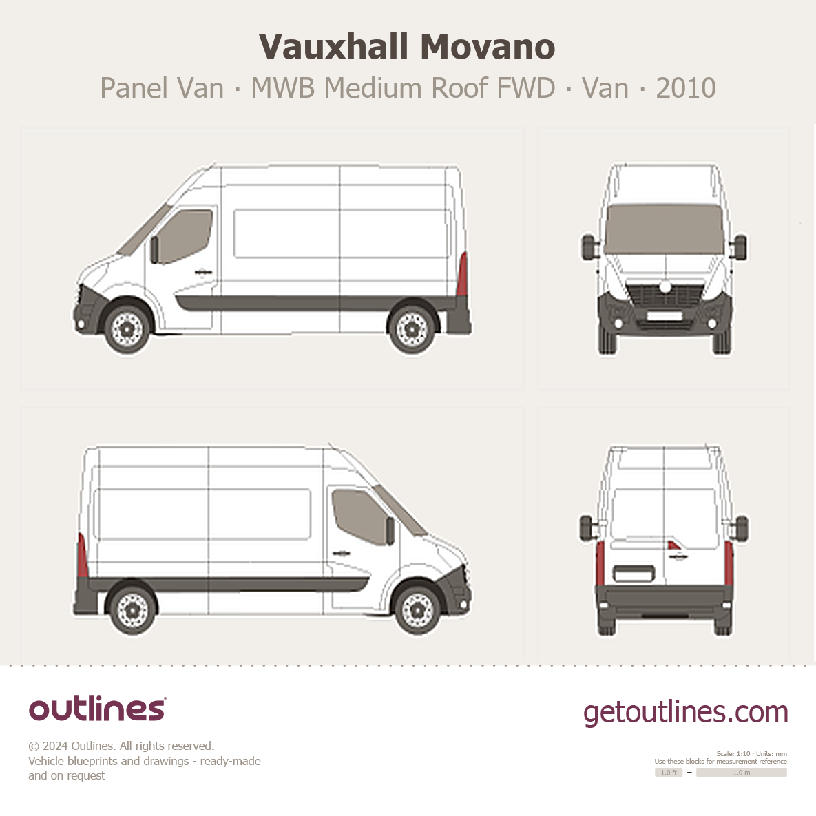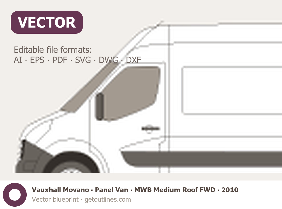 This 2010 Vauxhall Movano Panel Van MWB Medium Roof FWD Van blueprint helps designers, wrap studios, and 3D artists simplify their workflow and save valuable time for creative work instead of routine tasks.