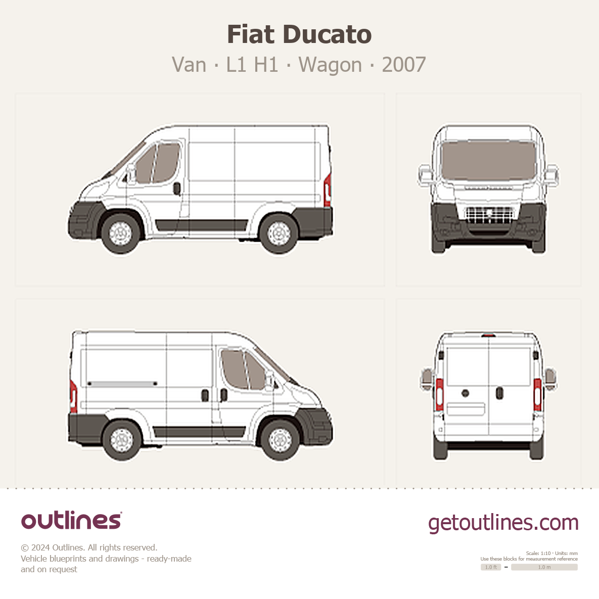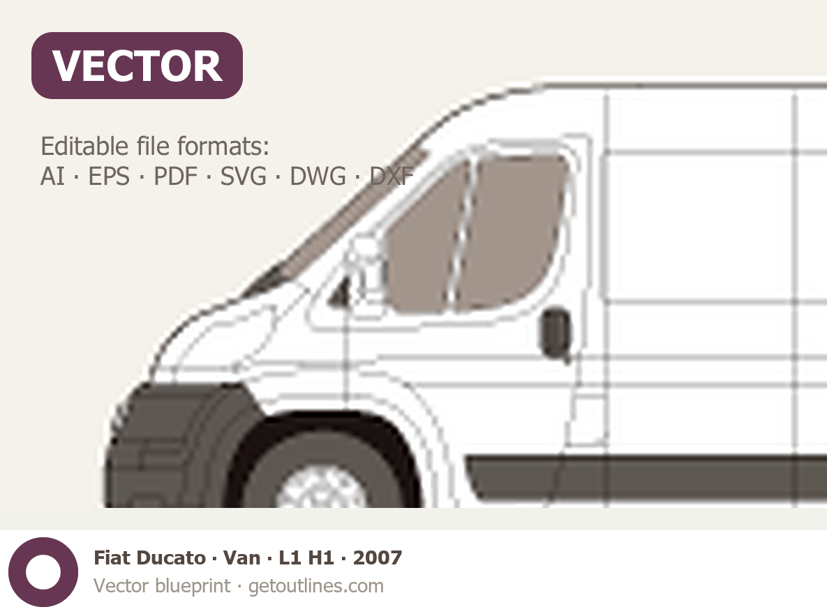 Buy this Fiat Ducato Van blueprint and line drawing in high-quality editable vector file formats. Best for 3D and car wrap design.