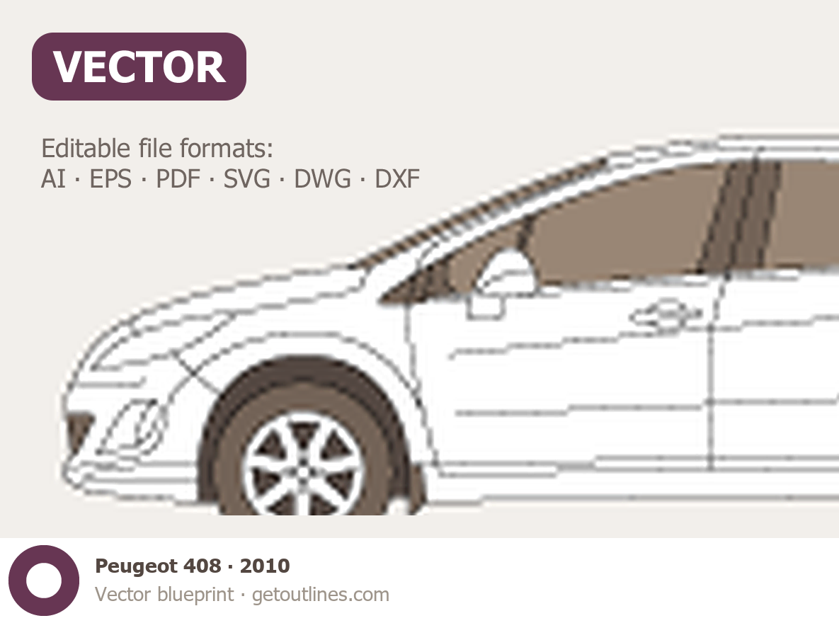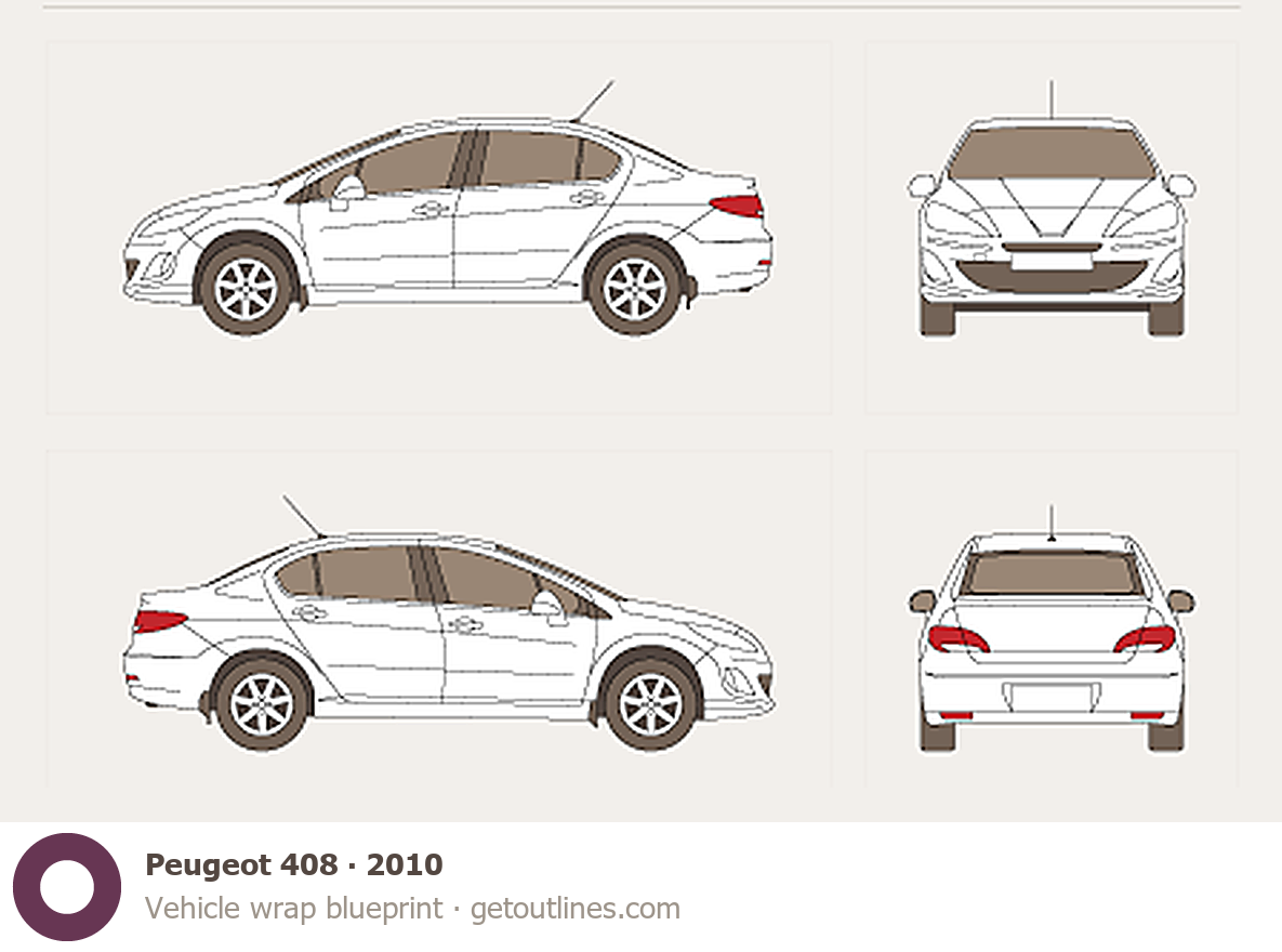 Buy this Peugeot 408 blueprint and line drawing in high-quality editable vector file formats. Best for 3D and car wrap design.