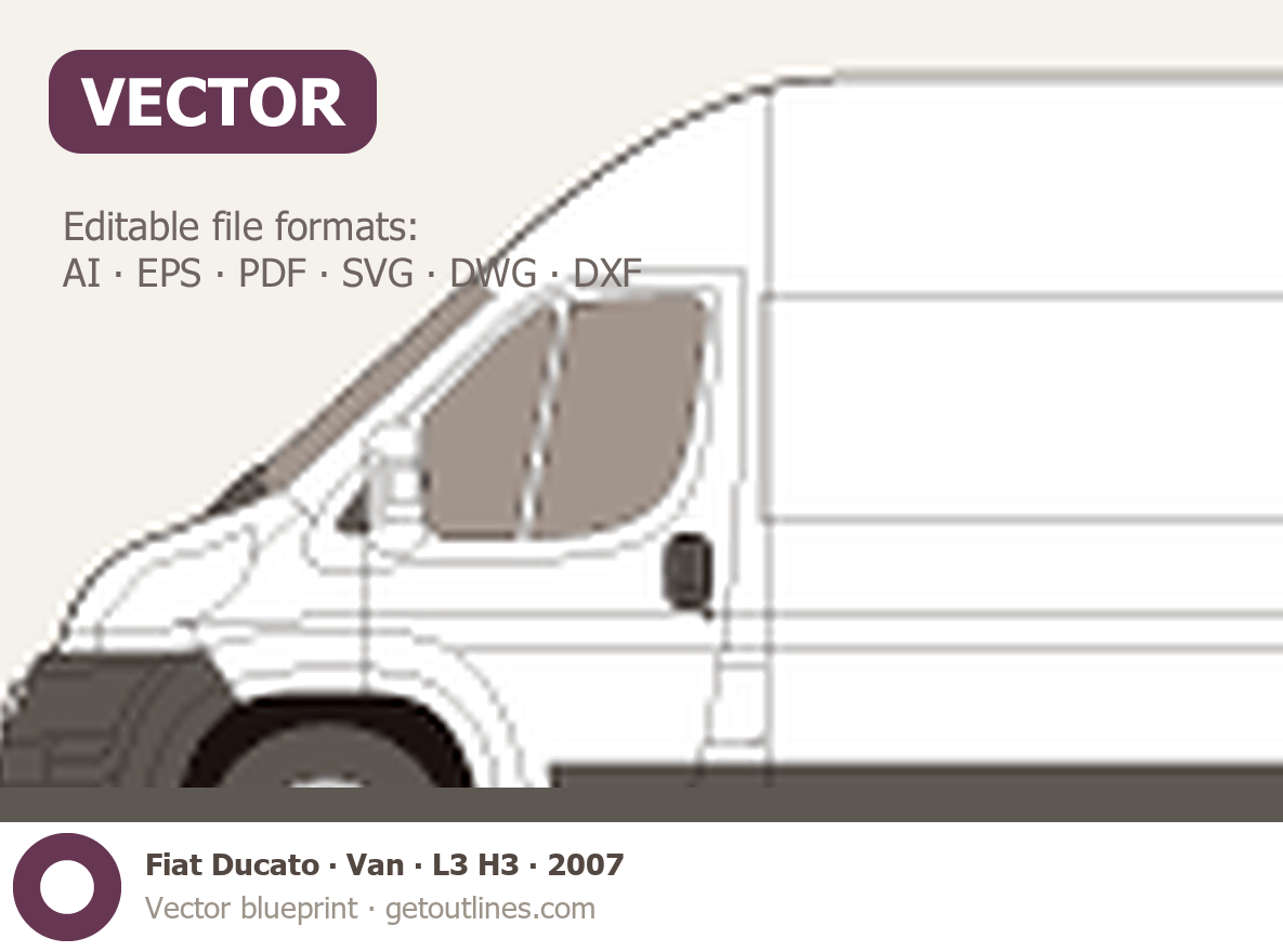 Buy this Fiat Ducato Van blueprint and line drawing in high-quality editable vector file formats. Best for 3D and car wrap design.