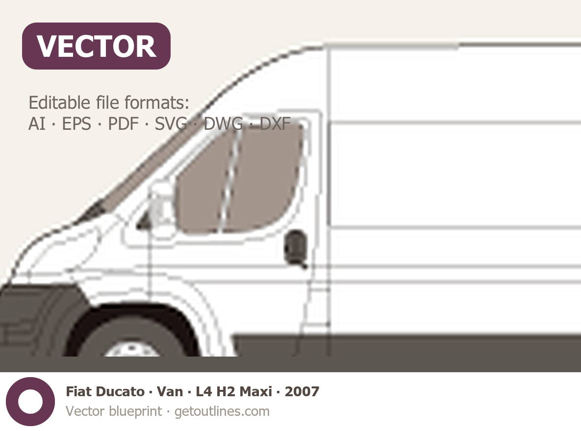 Buy this Fiat Ducato Van blueprint and line drawing in high-quality editable vector file formats. Best for 3D and car wrap design.