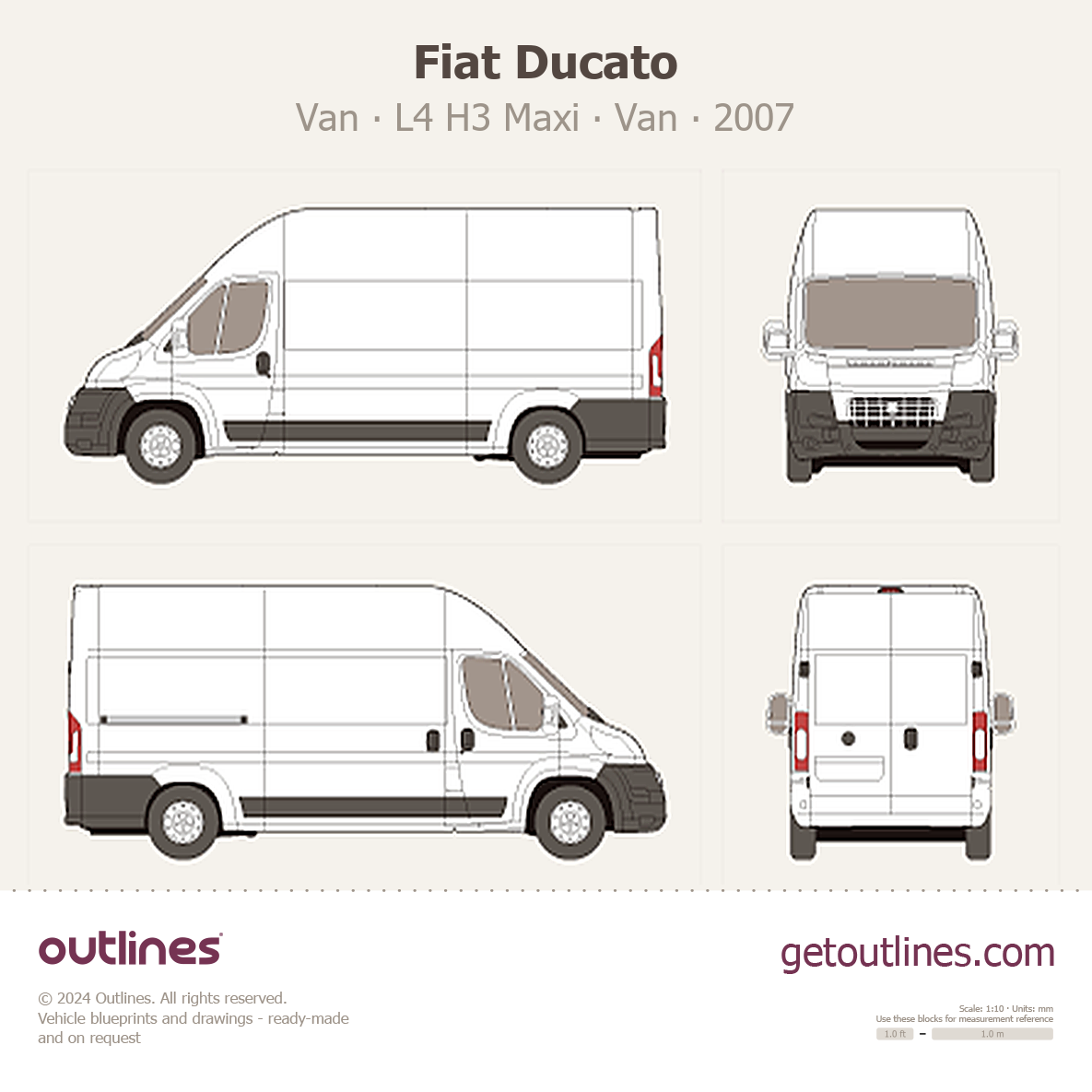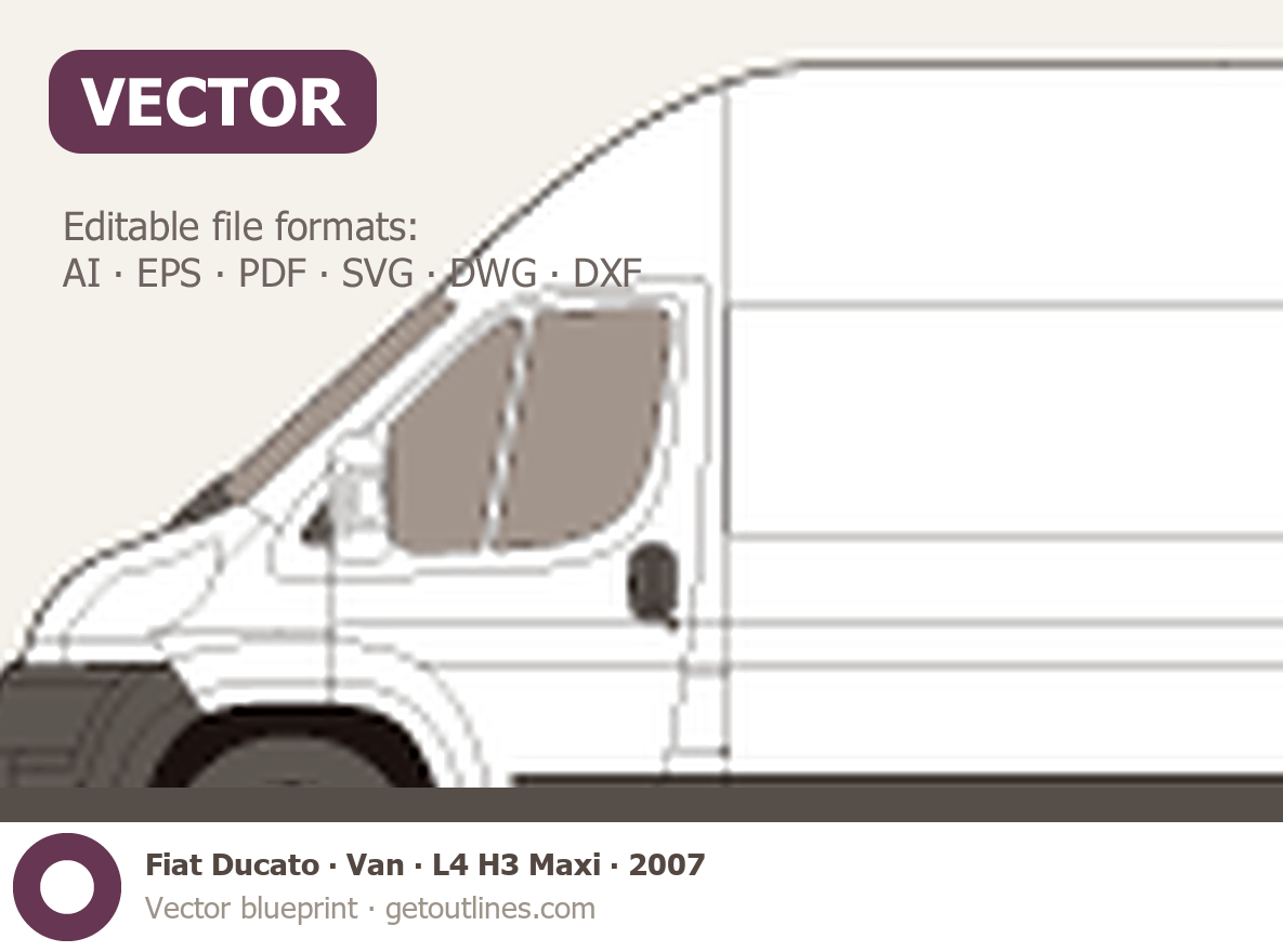 Buy this Fiat Ducato Van blueprint and line drawing in high-quality editable vector file formats. Best for 3D and car wrap design.