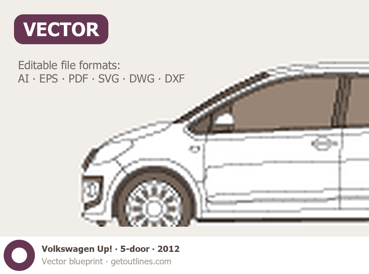 Buy this Volkswagen Up! blueprint and line drawing in high-quality editable vector file formats. Best for 3D and car wrap design.
