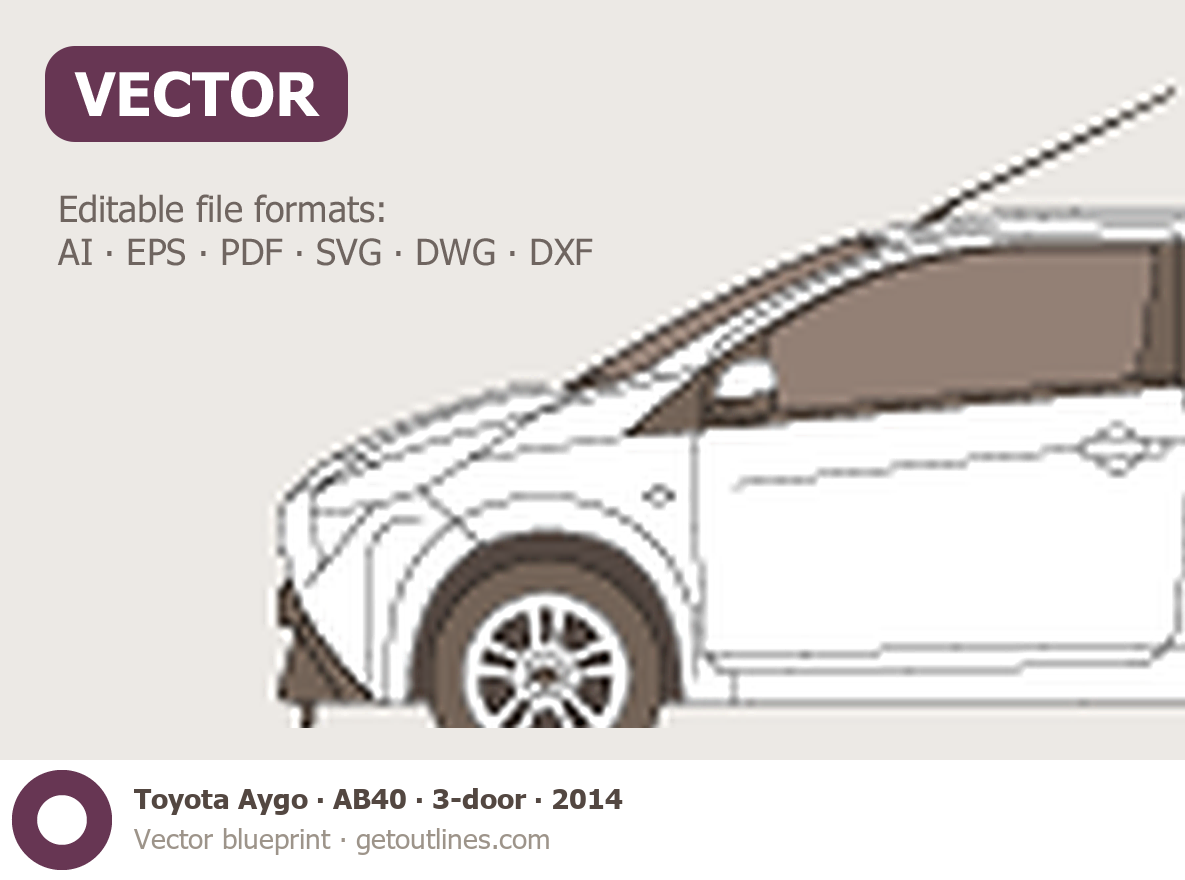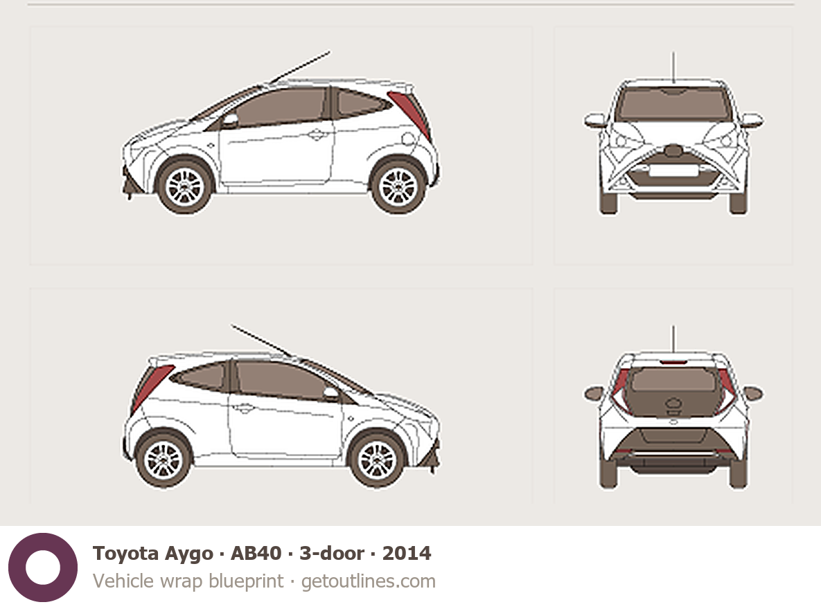 This 2014 Toyota Aygo AB40 3-door Hatchback blueprint helps designers, wrap studios, and 3D artists simplify their workflow and save valuable time for creative work instead of routine tasks.