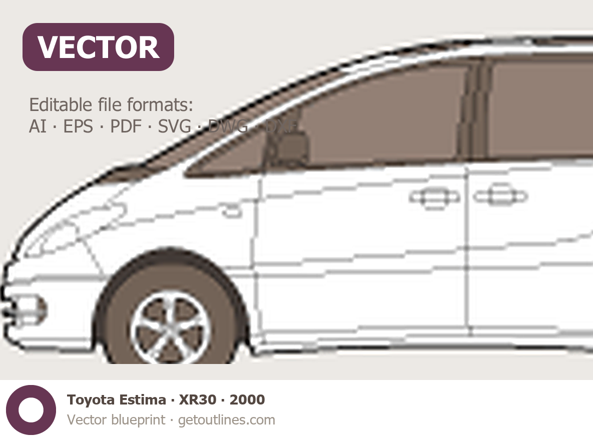 This 2000 Toyota Estima XR30 Minivan blueprint helps designers, wrap studios, and 3D artists simplify their workflow and save valuable time for creative work instead of routine tasks.
