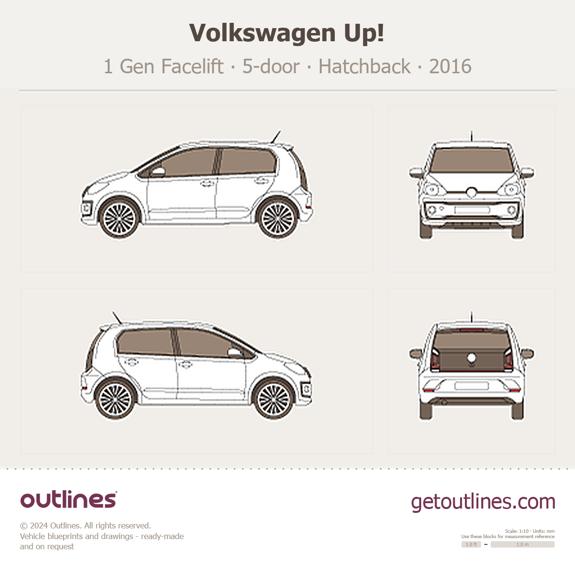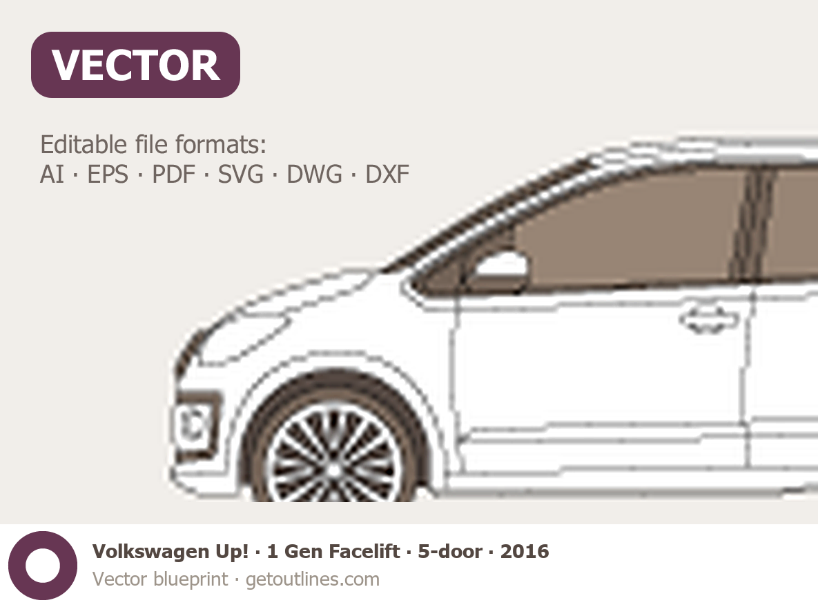 Buy this Volkswagen Up! 1 Gen Facelift blueprint and line drawing in high-quality editable vector file formats. Best for 3D and car wrap design.