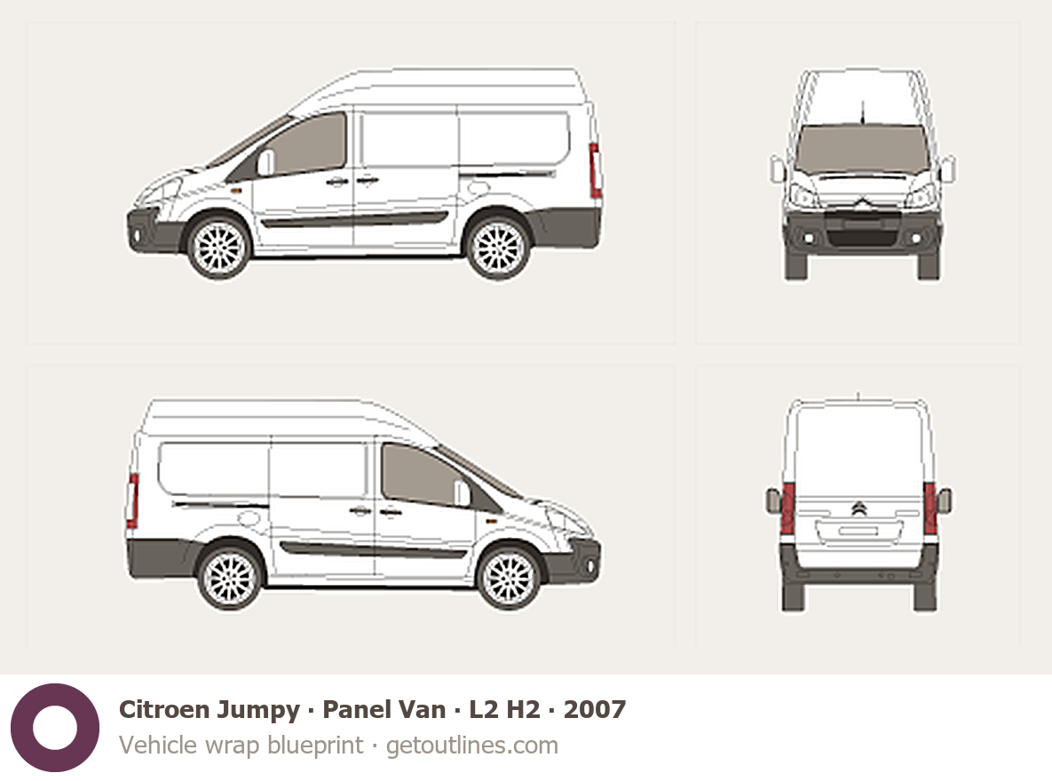 Buy this Citroen Jumpy Panel Van blueprint and line drawing in high-quality editable vector file formats. Best for 3D and car wrap design.