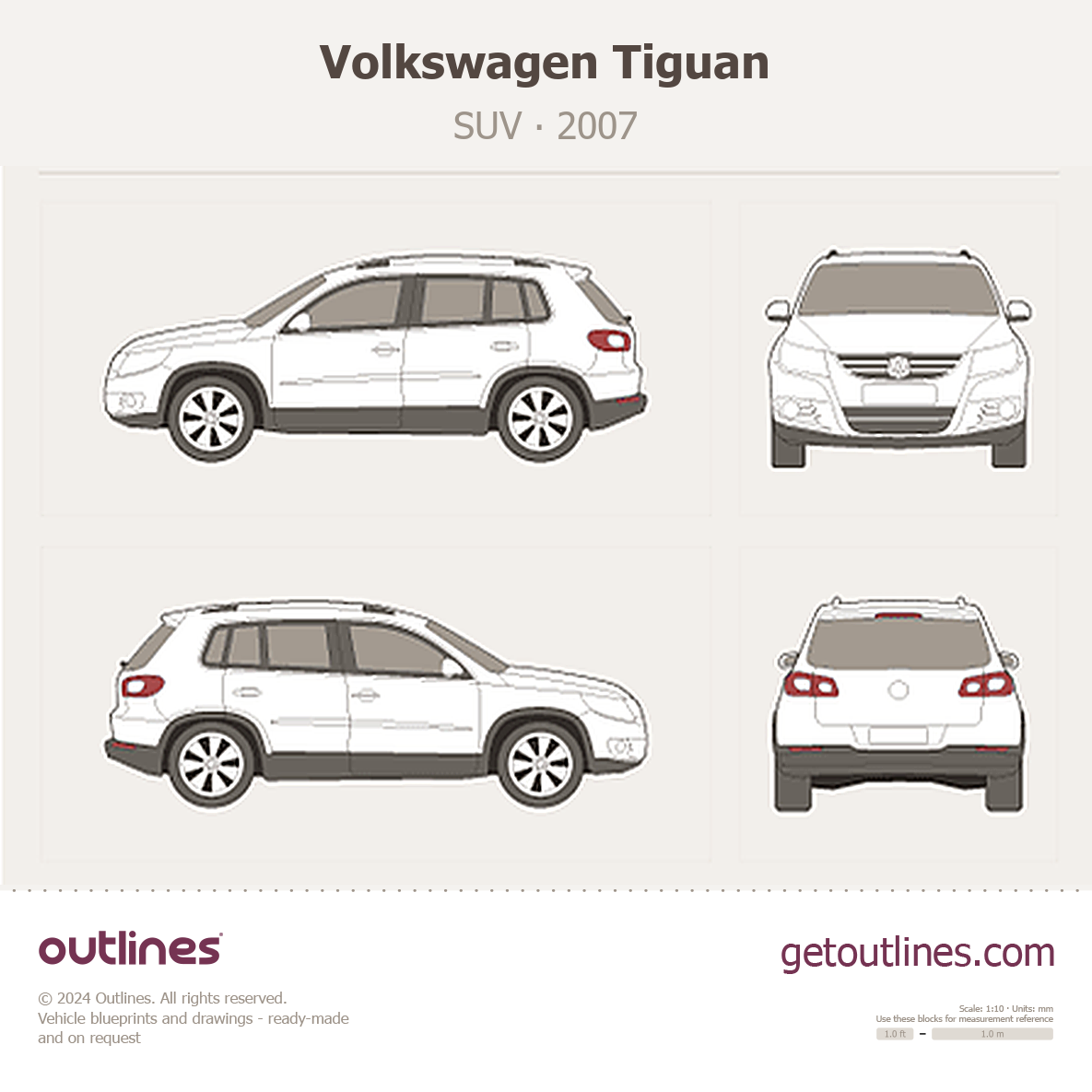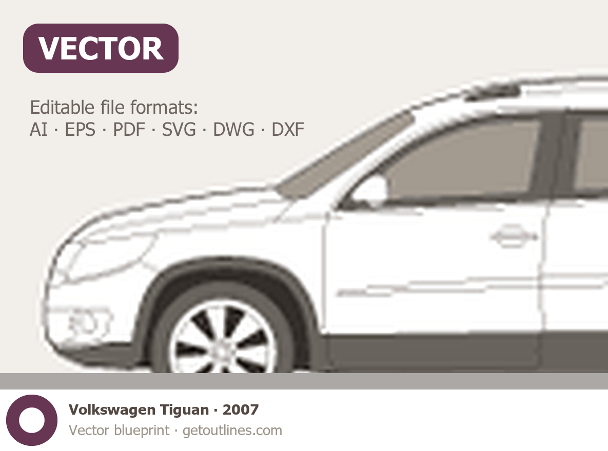 Buy this Volkswagen Tiguan blueprint and line drawing in high-quality editable vector file formats. Best for 3D and car wrap design.