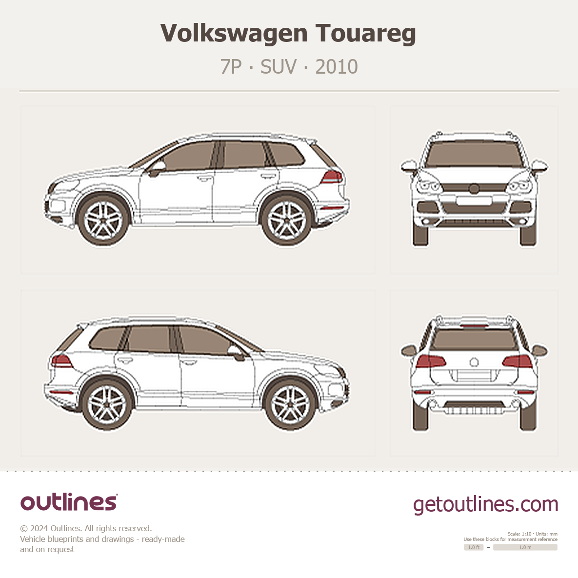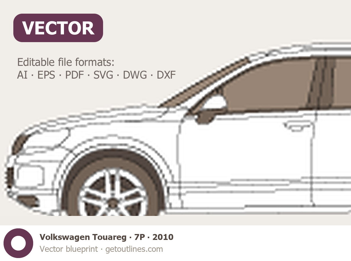 Buy this Volkswagen Touareg 7P blueprint and line drawing in high-quality editable vector file formats. Best for 3D and car wrap design.