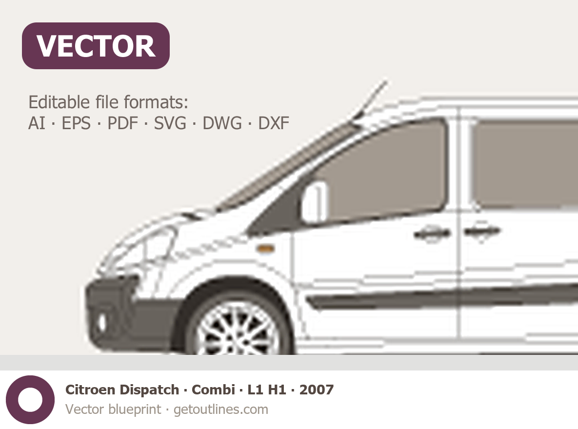 Buy this Citroen Dispatch Combi blueprint and line drawing in high-quality editable vector file formats. Best for 3D and car wrap design.