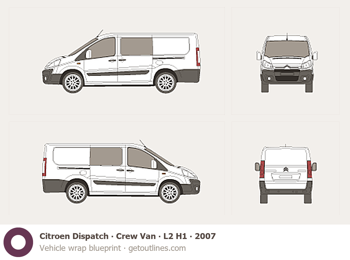 Buy this Citroen Dispatch Crew Van blueprint and line drawing in high-quality editable vector file formats. Best for 3D and car wrap design.