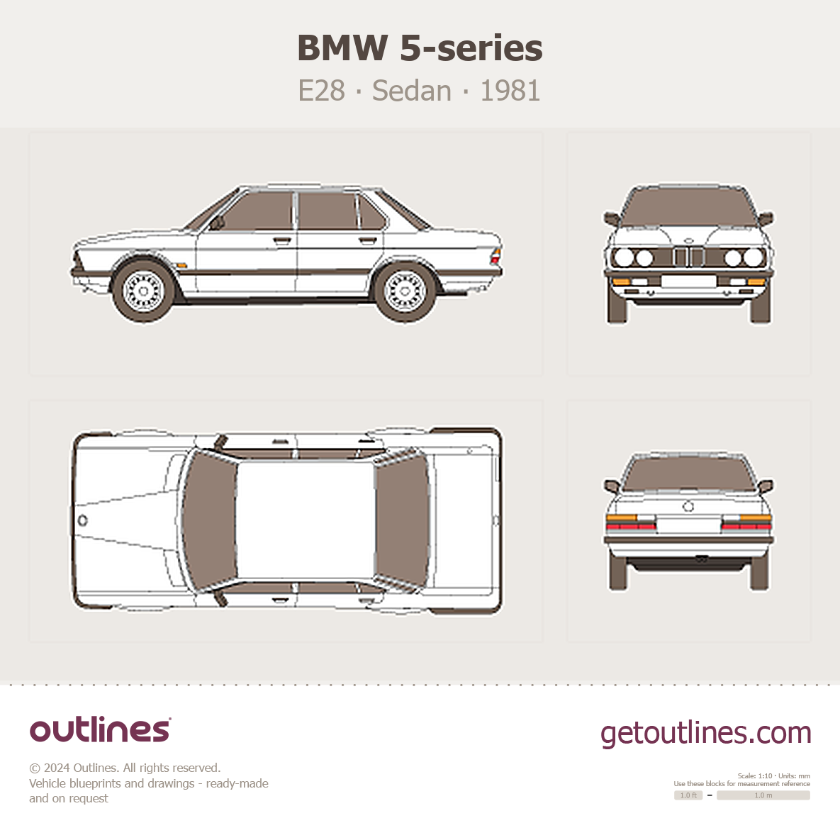 This is a blueprint of the 5-series, produced by carmaker BMW in 1981 - 1988. It features a Sedan body design and is classified as a Family vehicle.