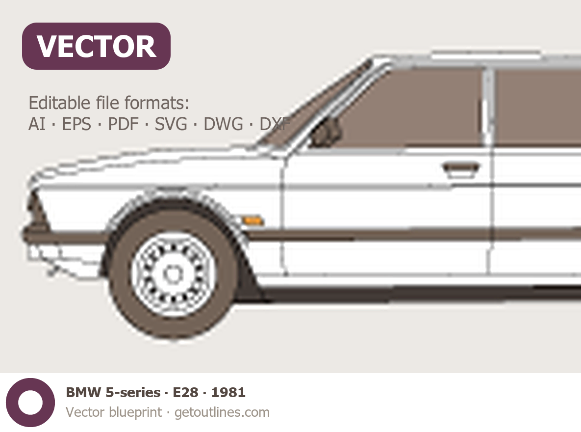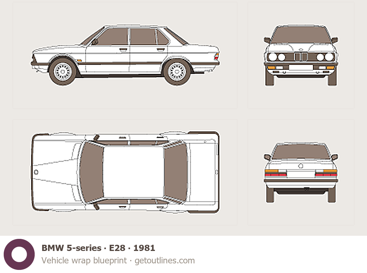 This 1981 BMW 5-series E28 Sedan blueprint helps designers, wrap studios, and 3D artists simplify their workflow and save valuable time for creative work instead of routine tasks.