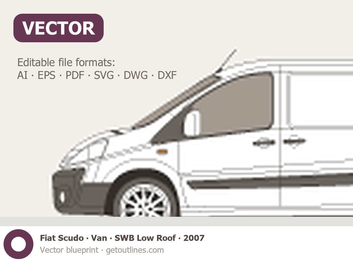 This 2007 Fiat Scudo Van SWB Low Roof Van blueprint helps designers, wrap studios, and 3D artists simplify their workflow and save valuable time for creative work instead of routine tasks.