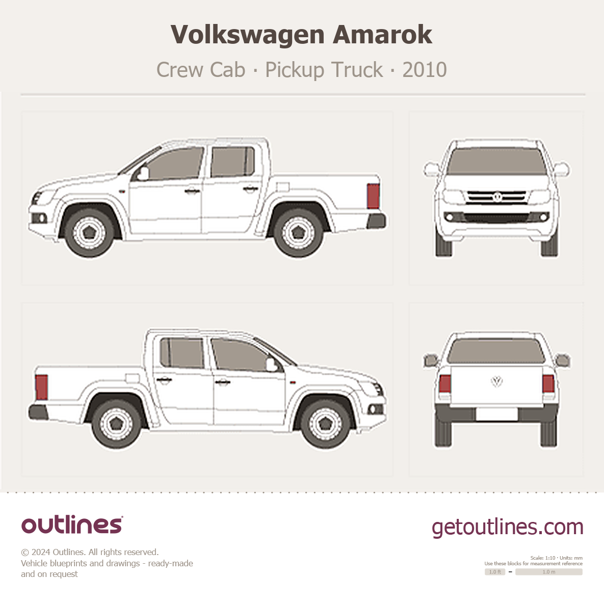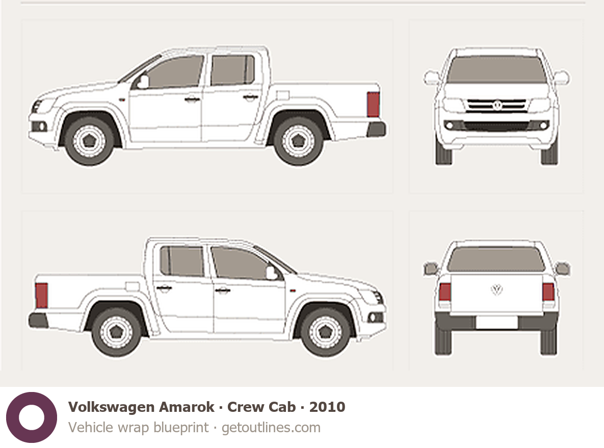 This 2010 Volkswagen Amarok Crew Cab Pickup Truck blueprint helps designers, wrap studios, and 3D artists simplify their workflow and save valuable time for creative work instead of routine tasks.