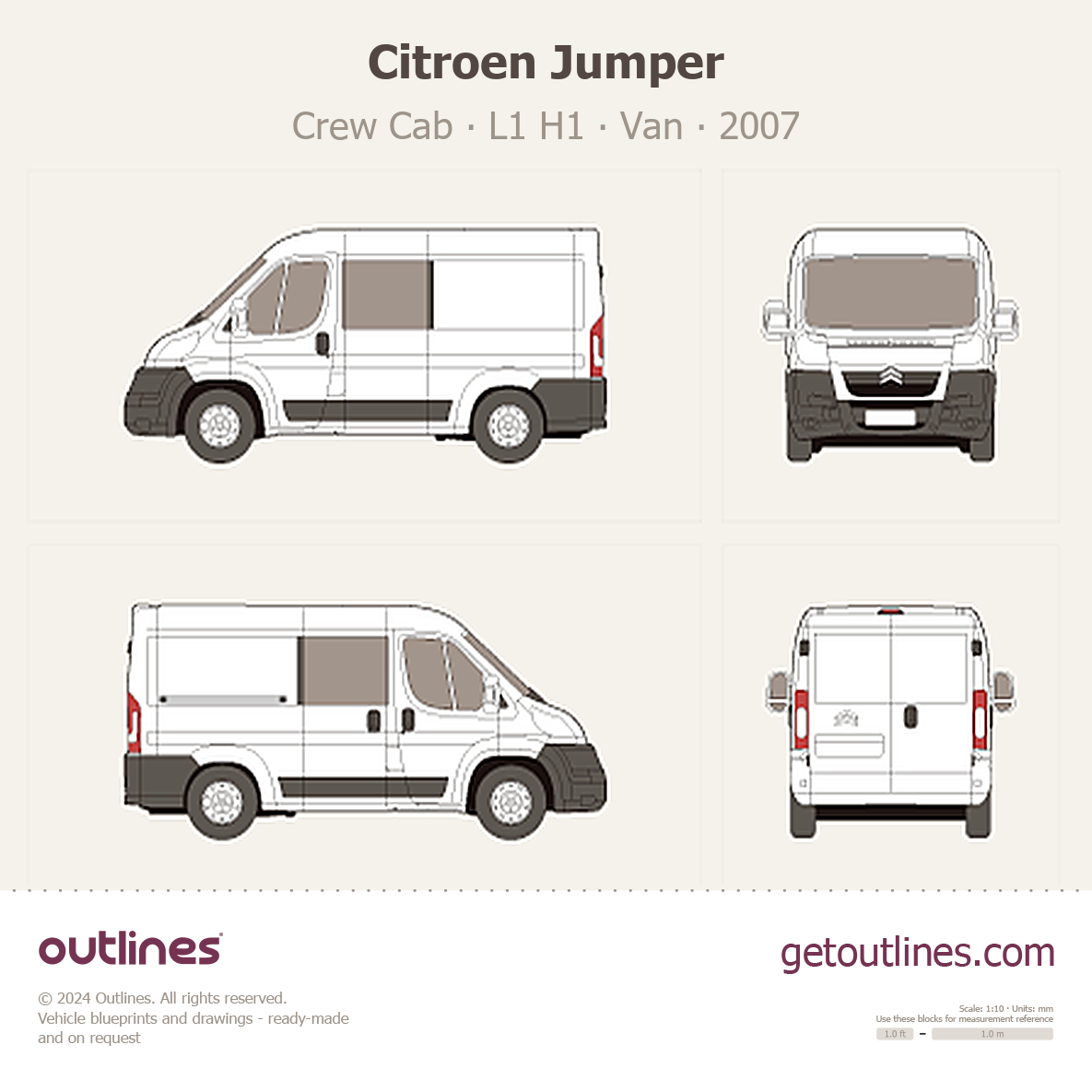 This 2007 Citroen Jumper Crew Cab L1 H1 Van blueprint helps designers, wrap studios, and 3D artists simplify their workflow and save valuable time for creative work instead of routine tasks.